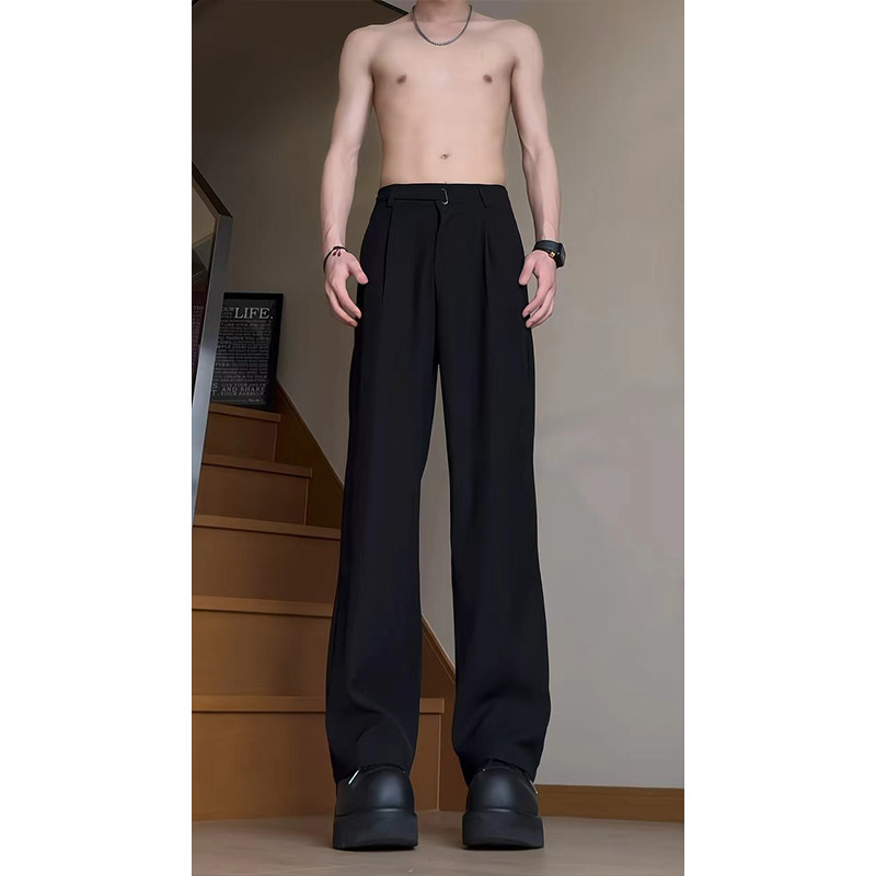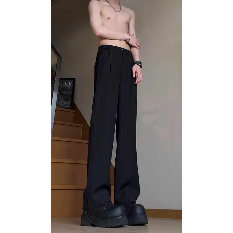 黑色设计感西裤男款垂坠感痞帅高级感裤子cleanfit修身直筒微喇裤