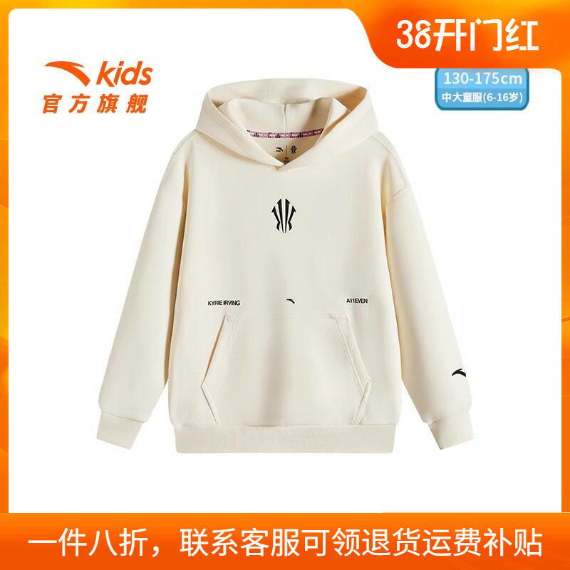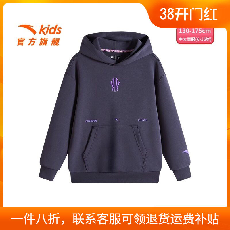 安踏儿童欧文系列男童连帽卫衣冬装上衣套头衫秋春款篮球运动衫D