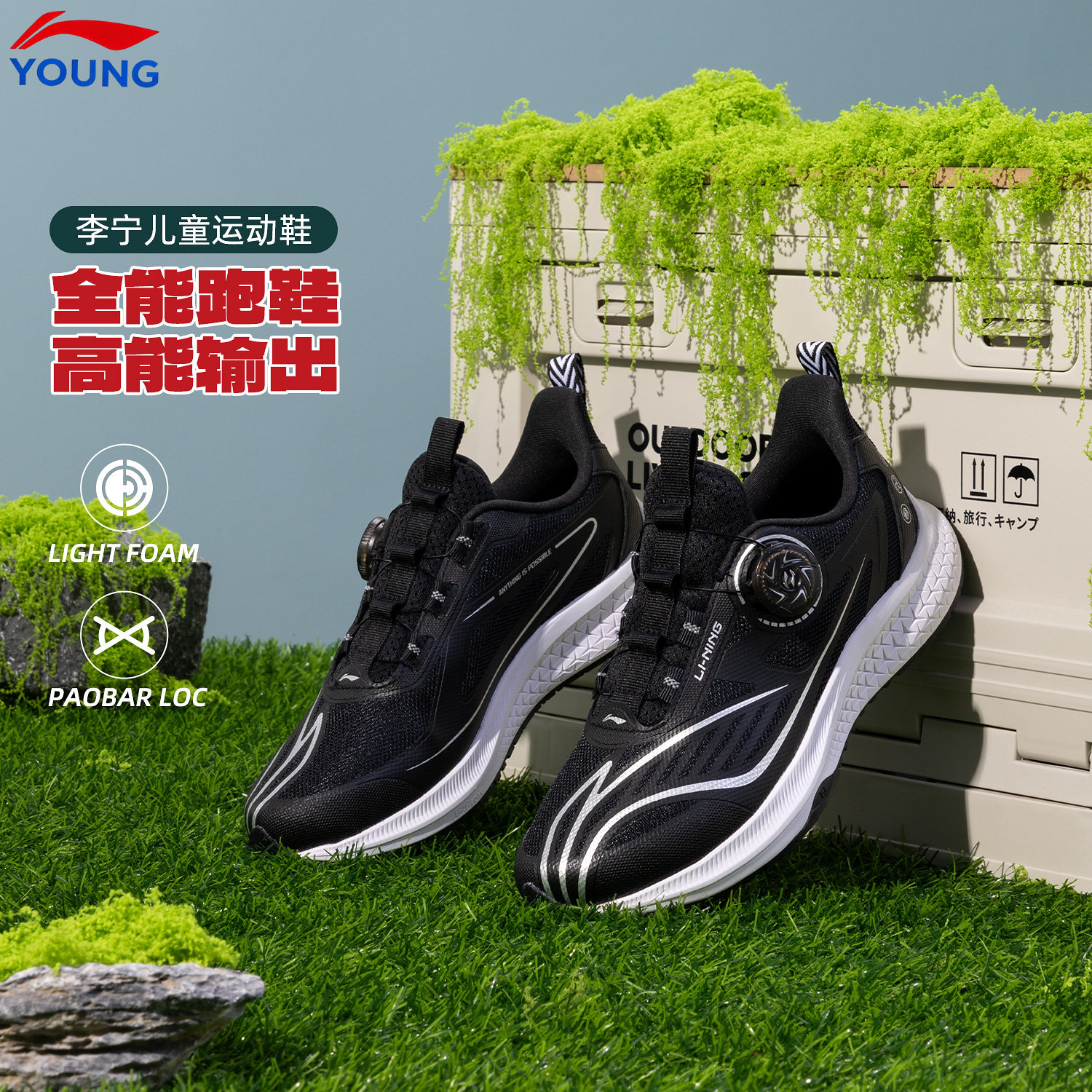 李宁官方旗舰正品儿童专业跑步鞋逐影男女大童鞋旋转扣减震运动鞋