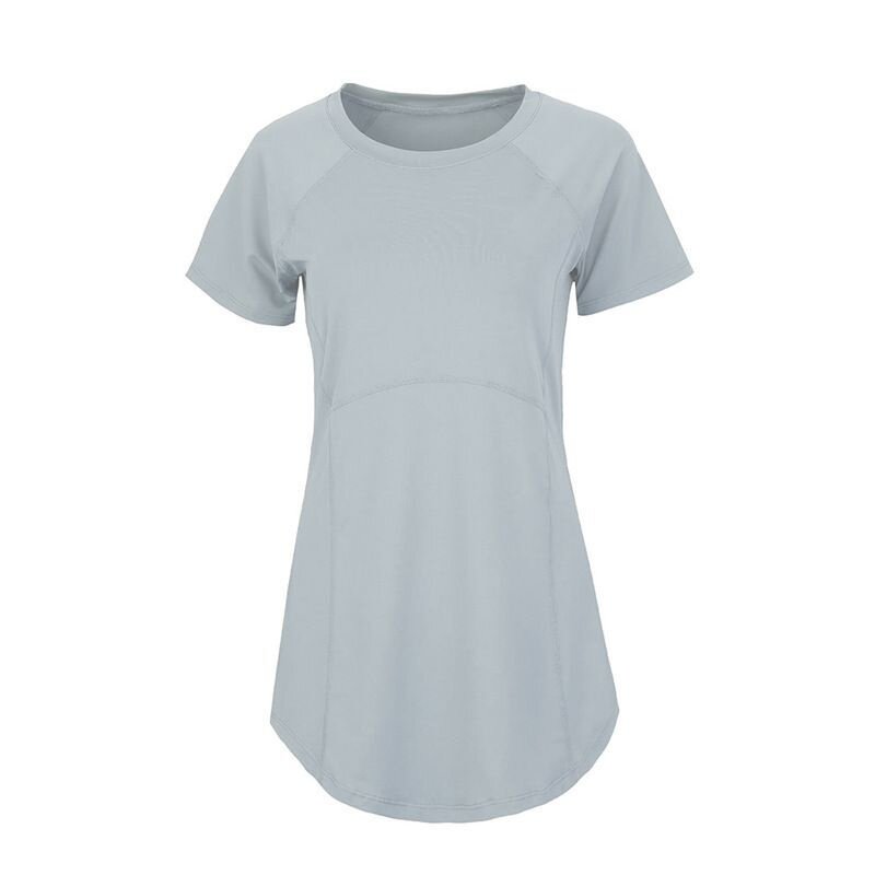 瑜伽服短袖夏季中长款遮臀速干健身运动T恤女鲨鱼裤搭配的上衣薄