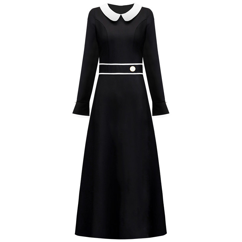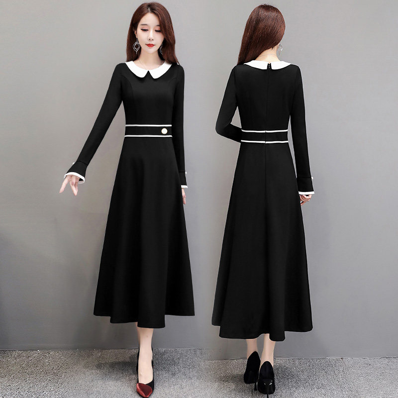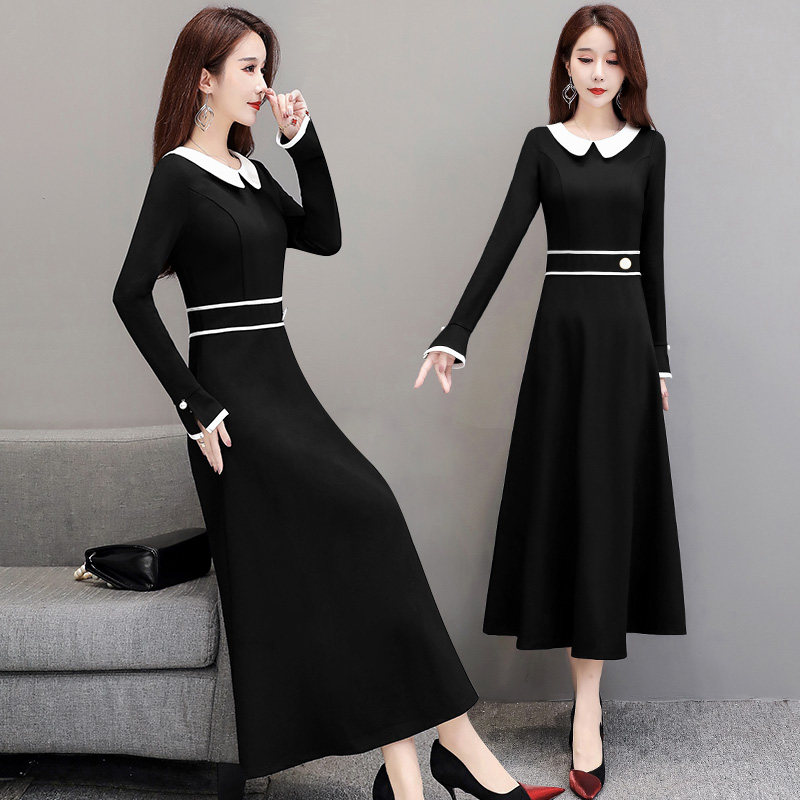 娃娃领连衣裙女秋冬2025新款小香风长款打底裙显瘦减龄收腰a字裙