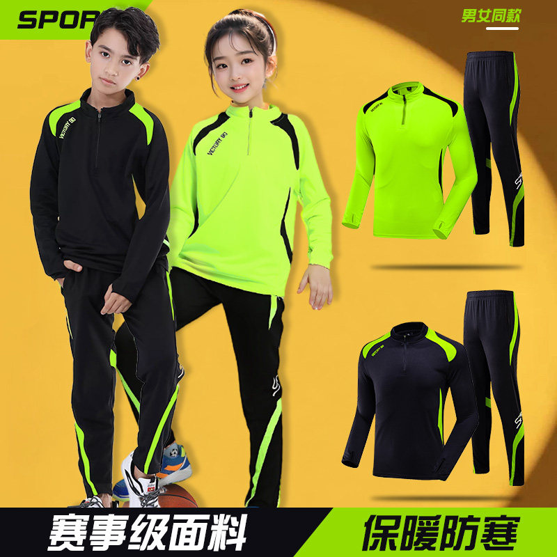 儿童长袖篮球服运动套装男童女孩暖羽毛球服定制半拉链训练服秋冬