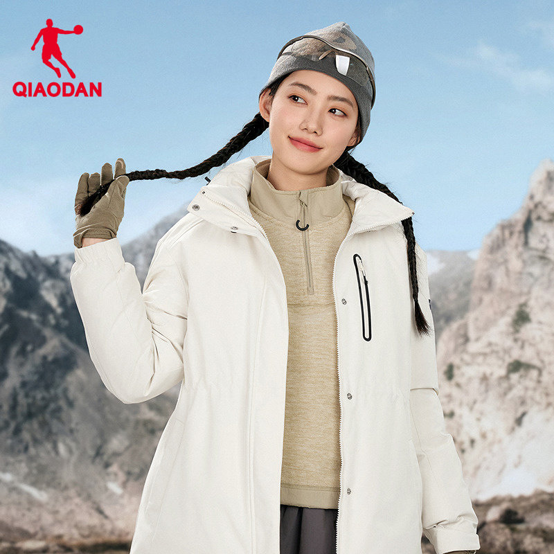 乔丹女款羽绒服中长款保暖收腰运动棉服2025冬季新款防泼水防寒服