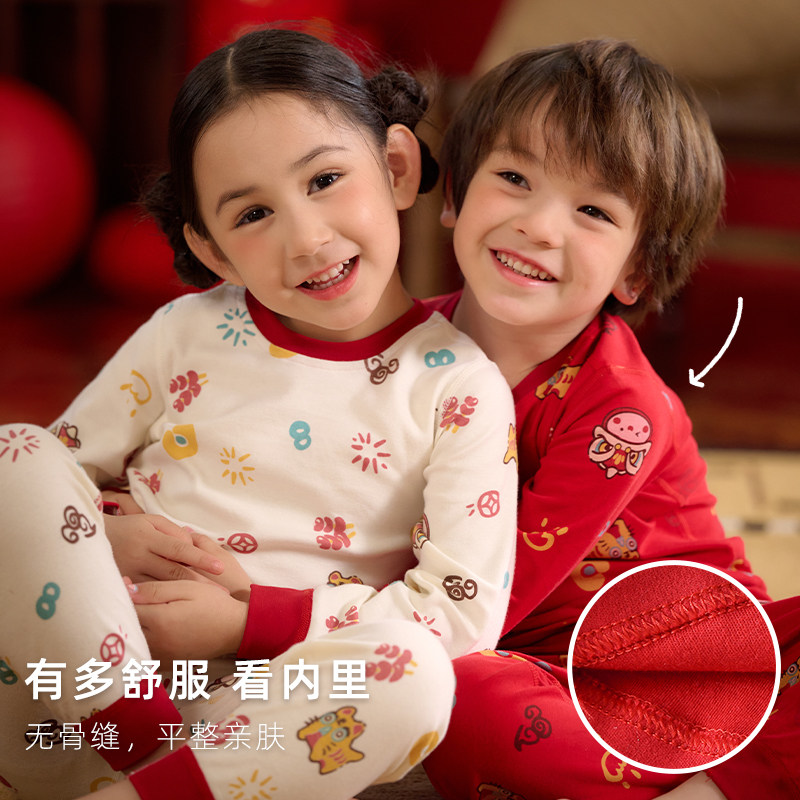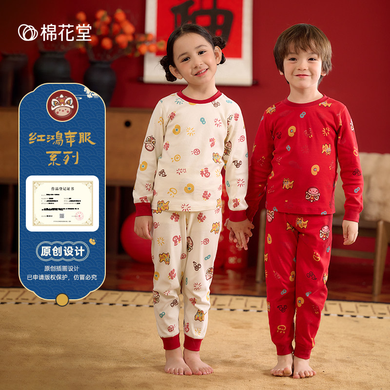 棉花堂男童套装宝宝内衣儿童纯棉小童家居服女童童装新年衣服保暖