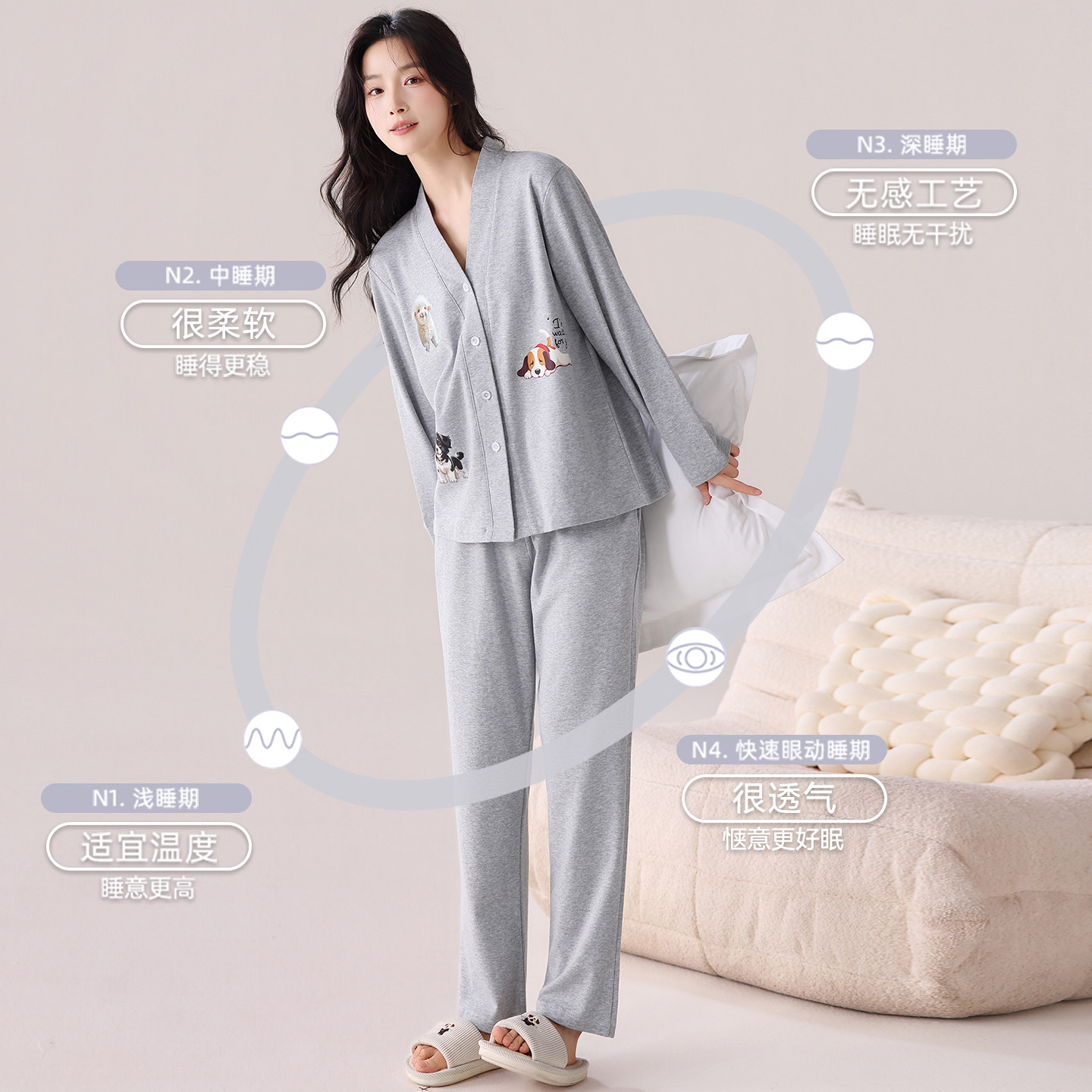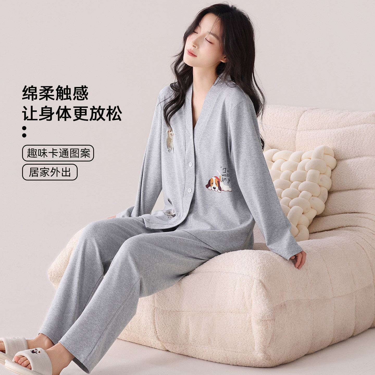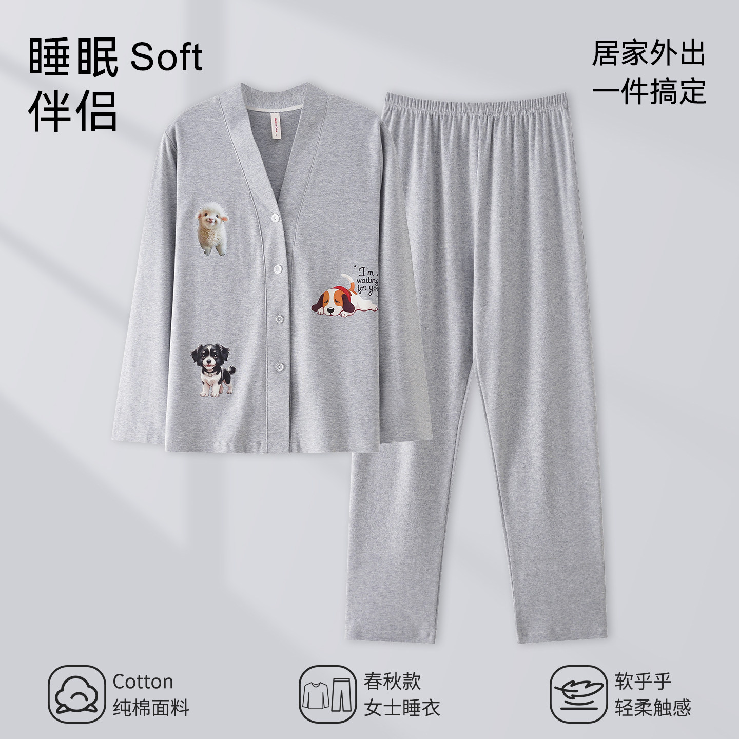 芬腾可安睡衣女款2026新款冬高级感纯棉长袖大码灰色家居服春秋季