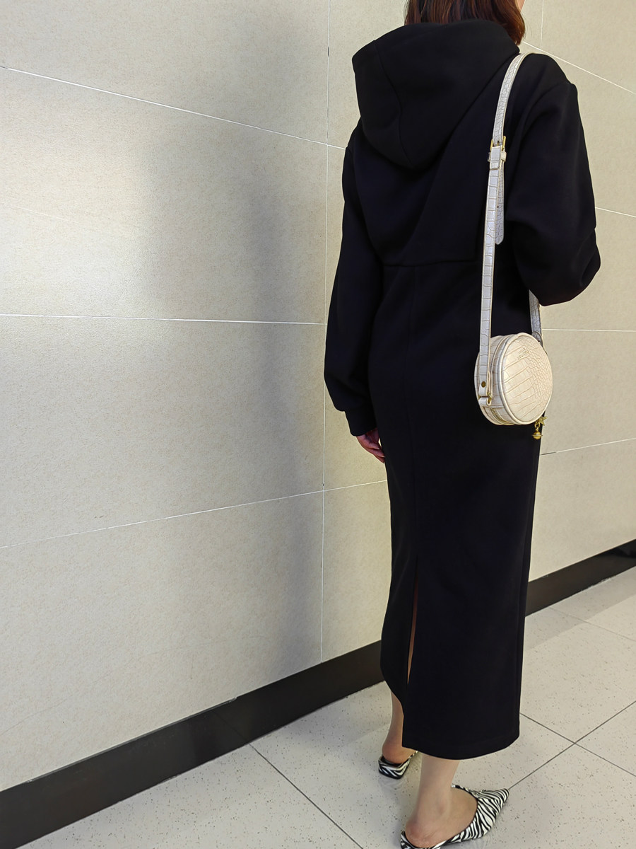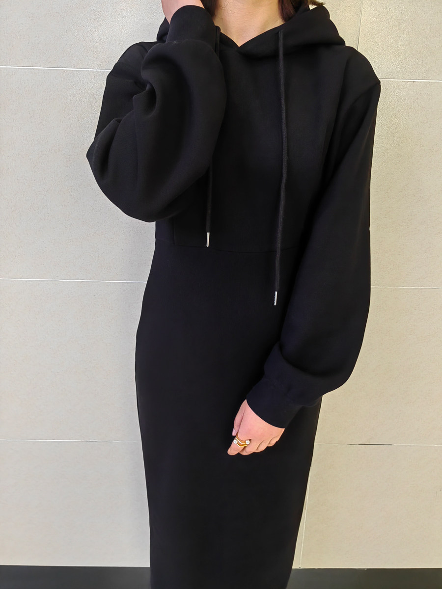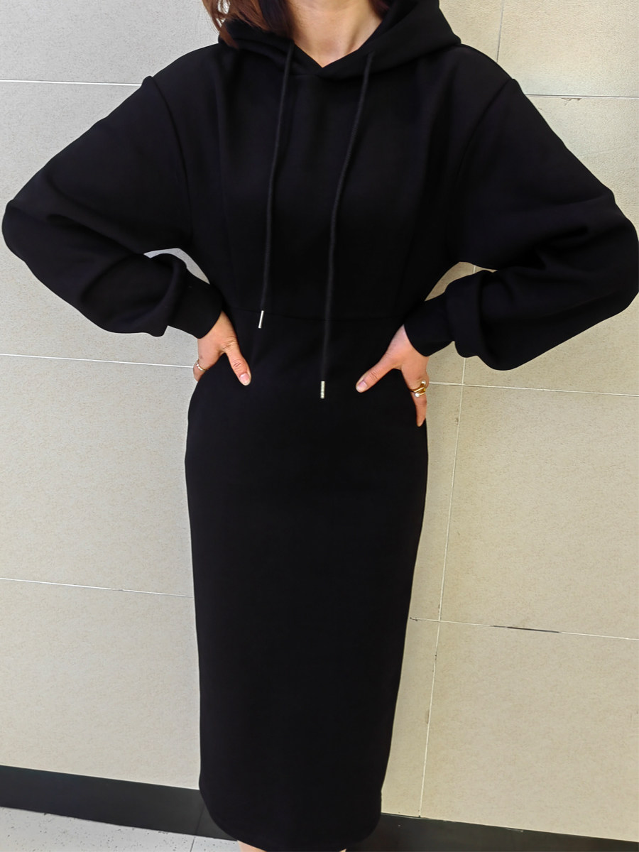 高级感黑色长袖连衣裙女长款收腰气质显瘦高腰卫衣裙裙子秋季新款