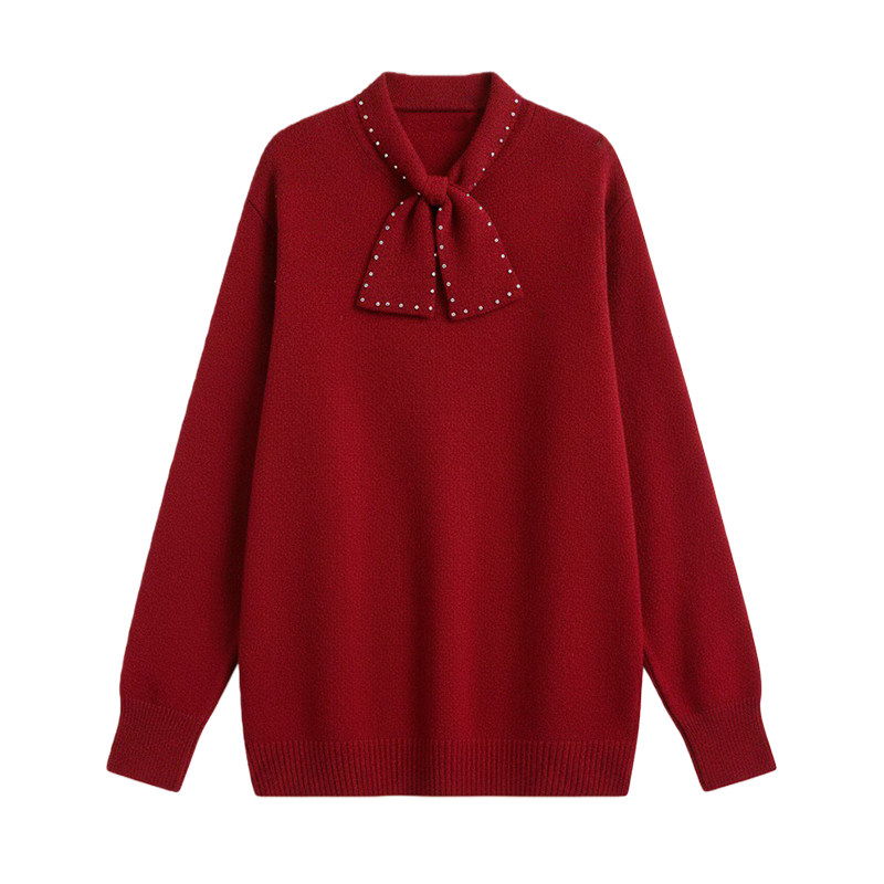 红色毛衣女款2026新款冬季高级感钉珠小个子遮屁股打底羊毛衫