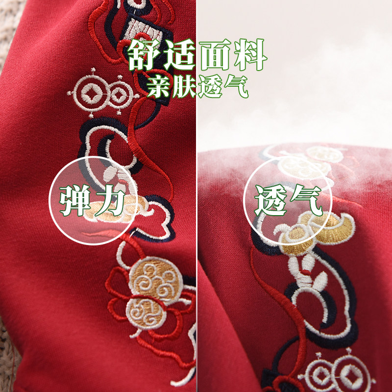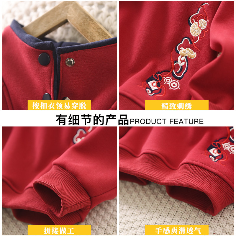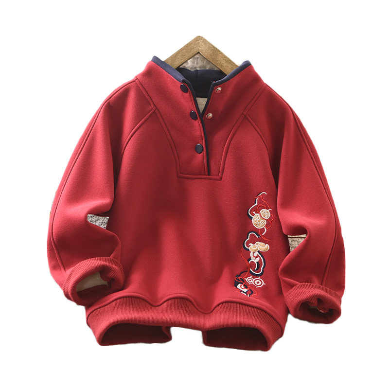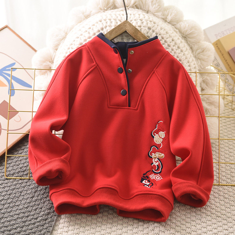 男童加绒红色卫衣蛇年立领冬季2025新款中大童新年服中国风上衣
