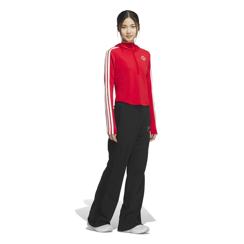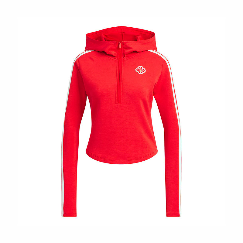adidas阿迪达斯马年新年款红色三条纹连帽套头衫春女卫衣 KG3457