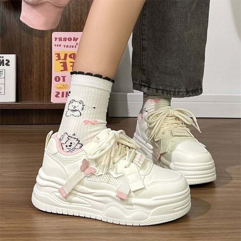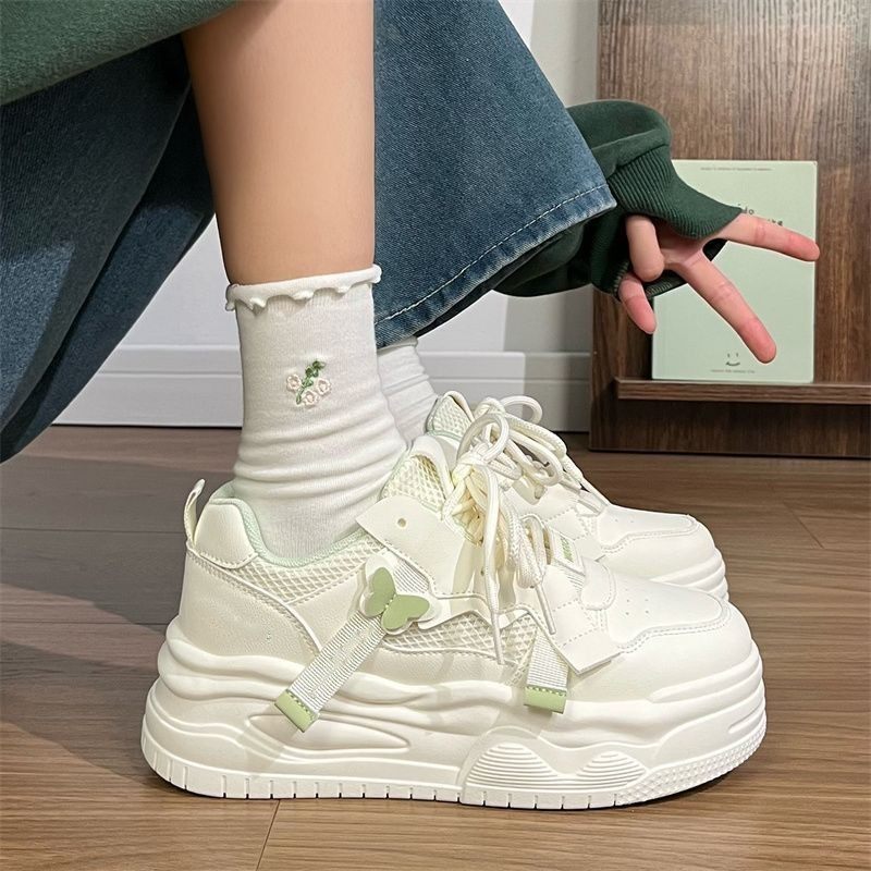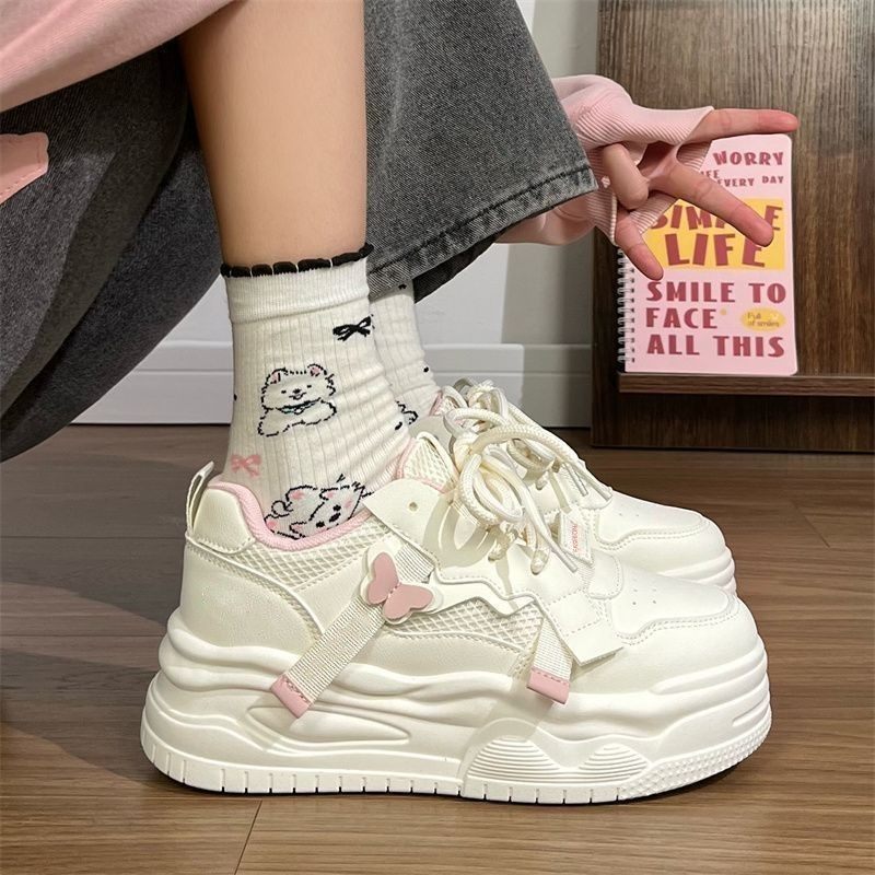 女童2026春秋新款时尚百搭厚底甜美蝴蝶小白鞋女款休闲运动板鞋女