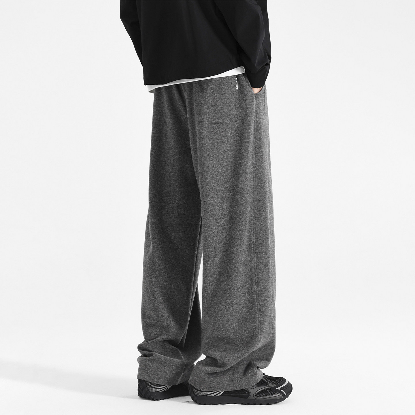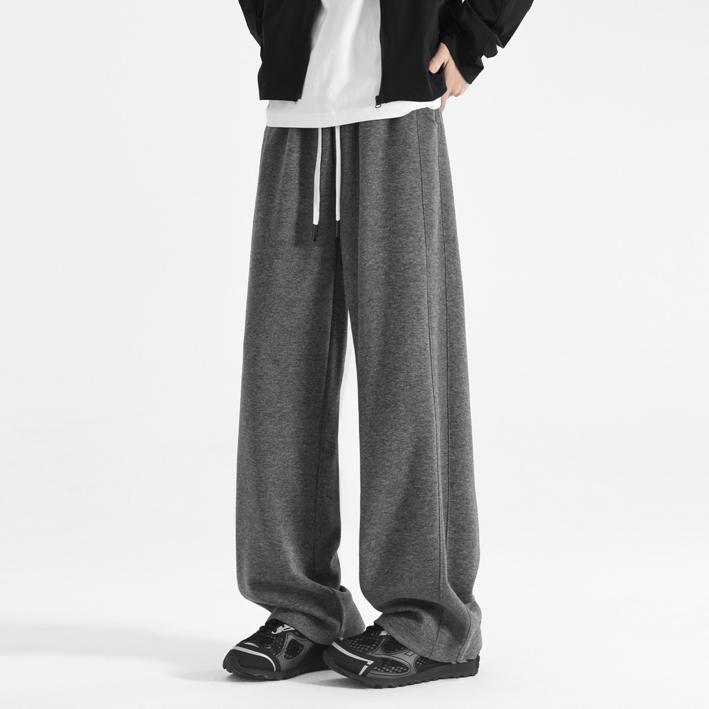 欧洲站羊毛直筒裤子男款秋冬垂感宽松阔腿卫裤加绒休闲长裤运动裤