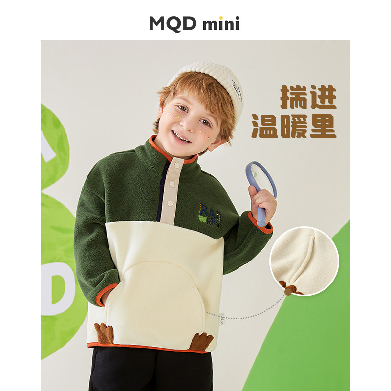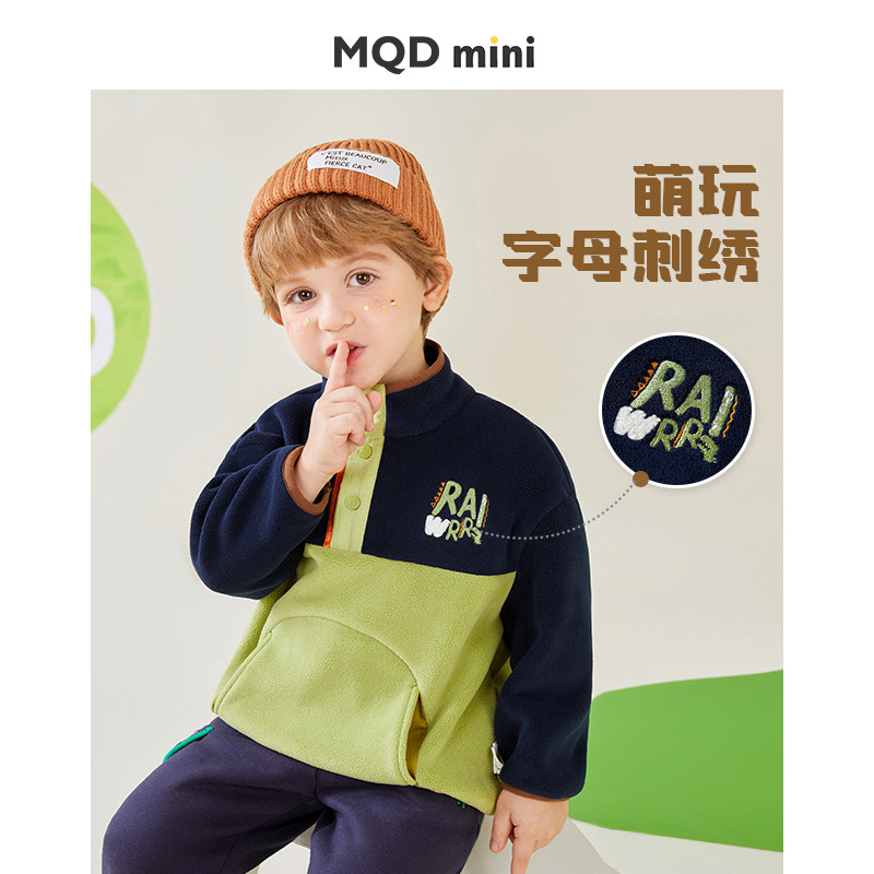 MQDmini男童加绒加厚卫衣儿童秋冬季保暖上衣宝宝冬装半高领衣服