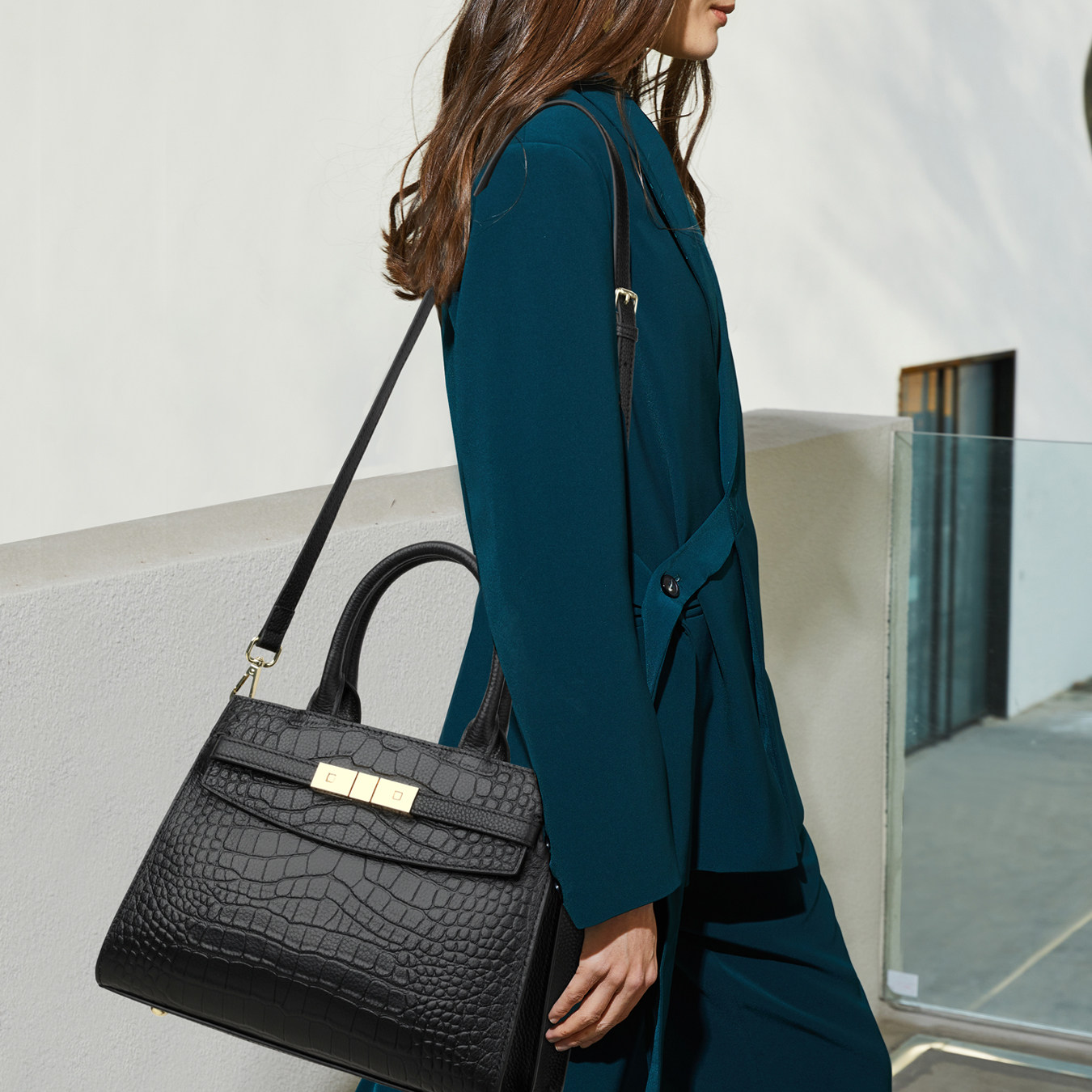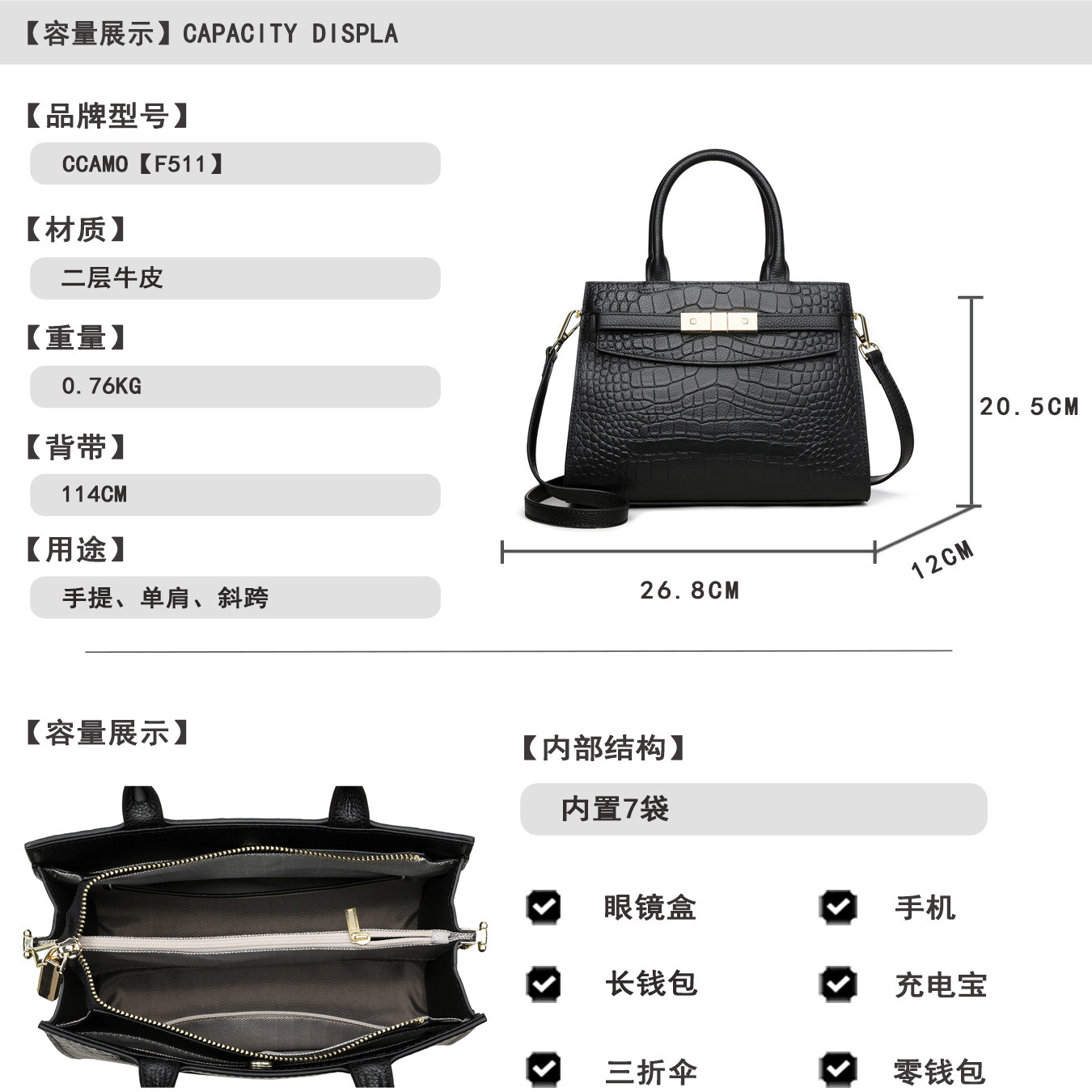 CCAMO包包女款2025新款包包高级感轻奢小众真皮鳄鱼纹手提通勤包