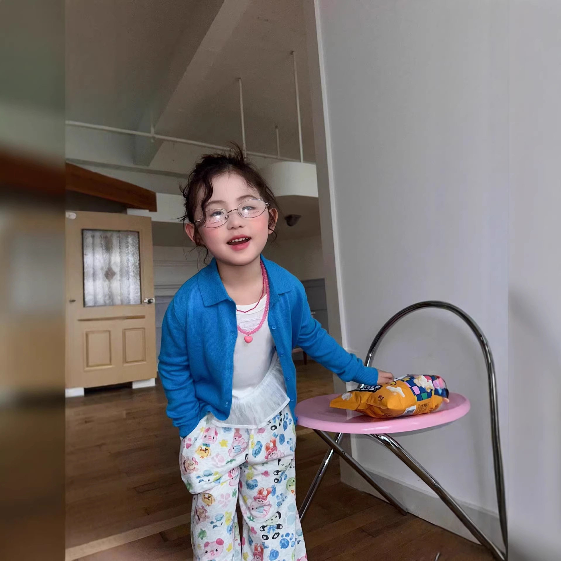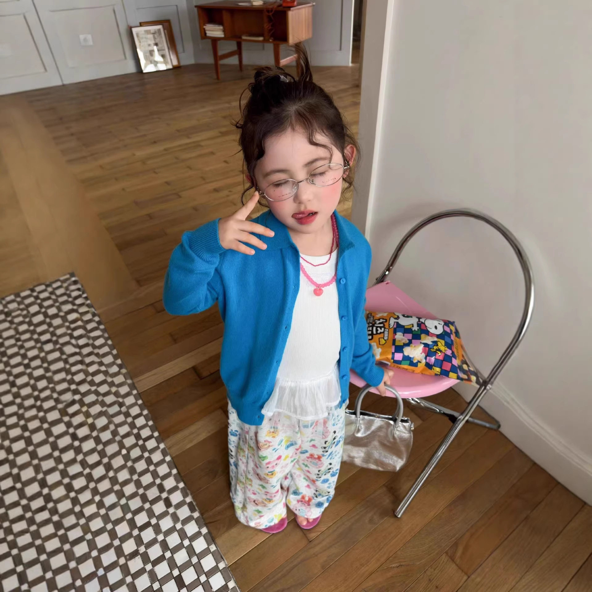 韩系春装童装2026春秋新款儿童蓝色翻领毛衣女童韩系百搭开衫韩系