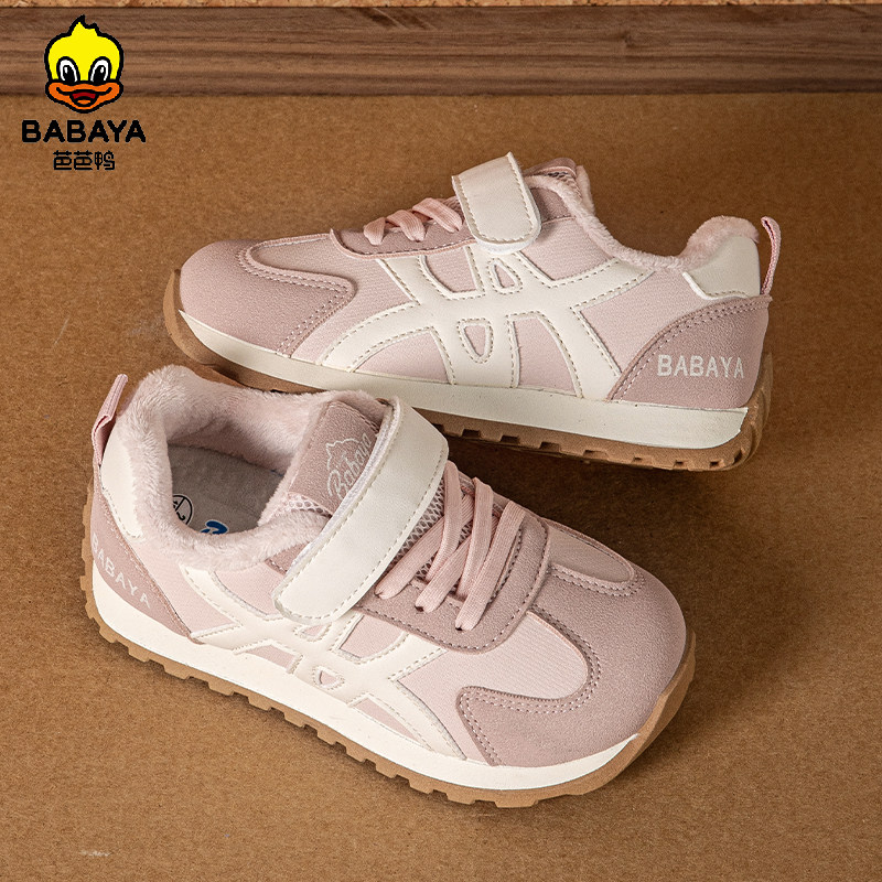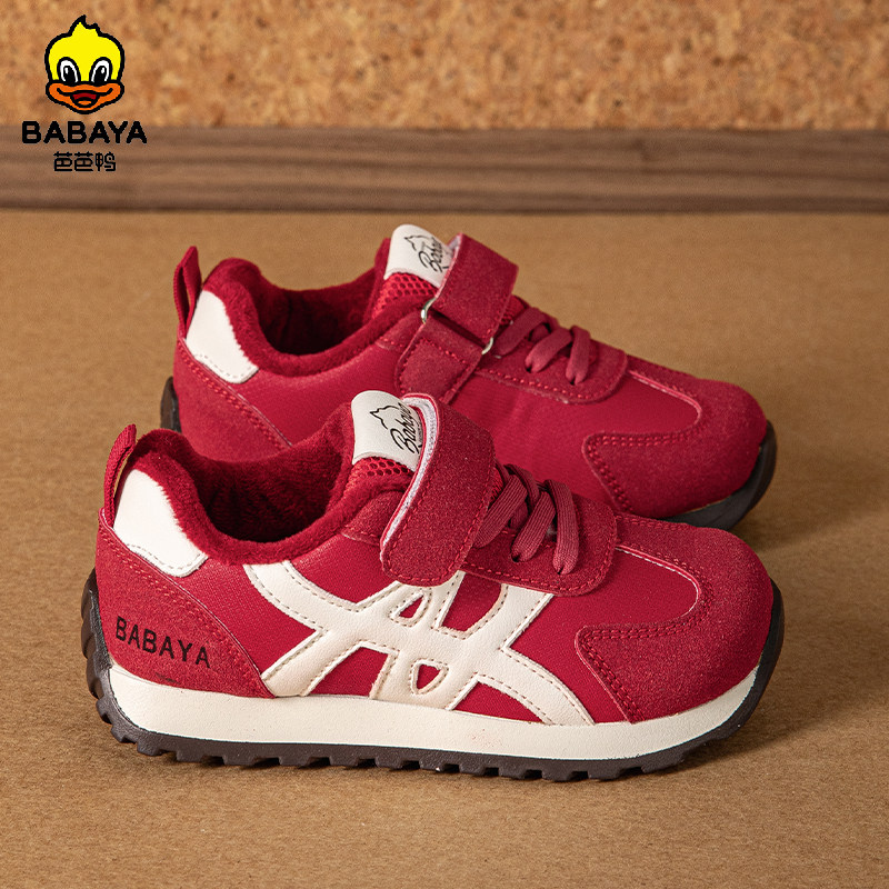 芭芭鸭儿童运动鞋加绒红色阿甘鞋2025冬新款板鞋男童二棉鞋女童鞋