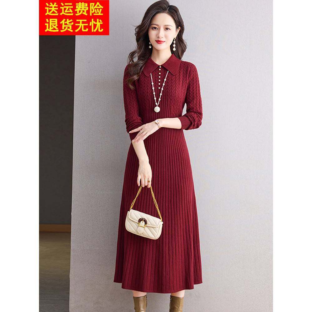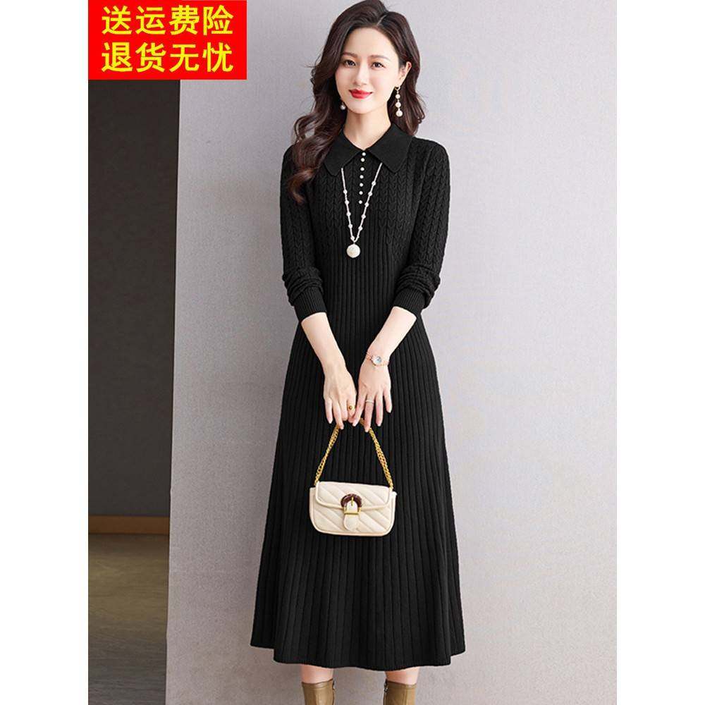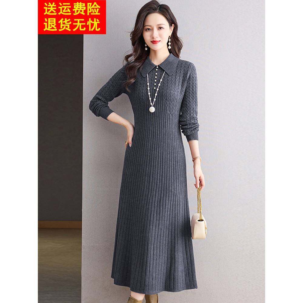 高端长款羊毛衫针织连衣裙2025新款秋冬翻领修身a字裙过膝配大衣