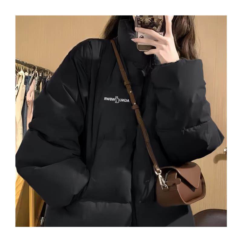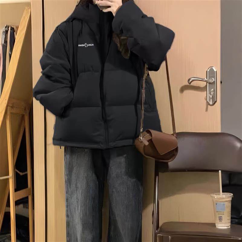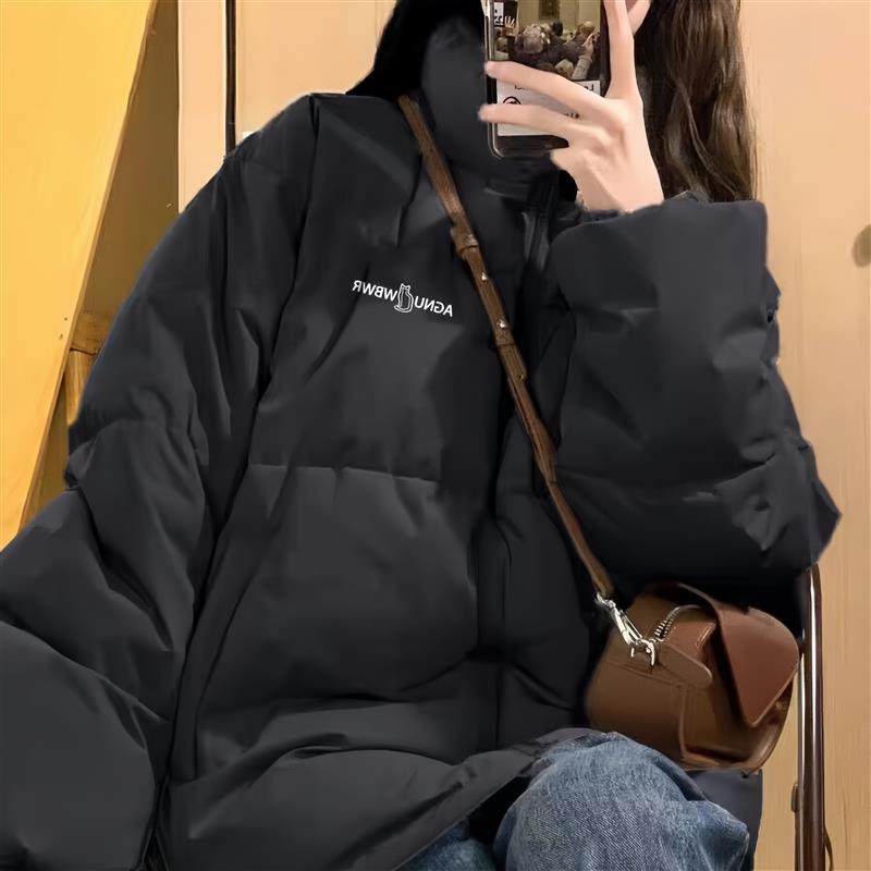 黑色百搭加厚中长款羽绒服女冬季新款初中学生冬季外套面包服棉袄