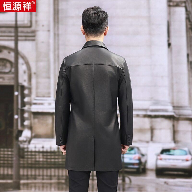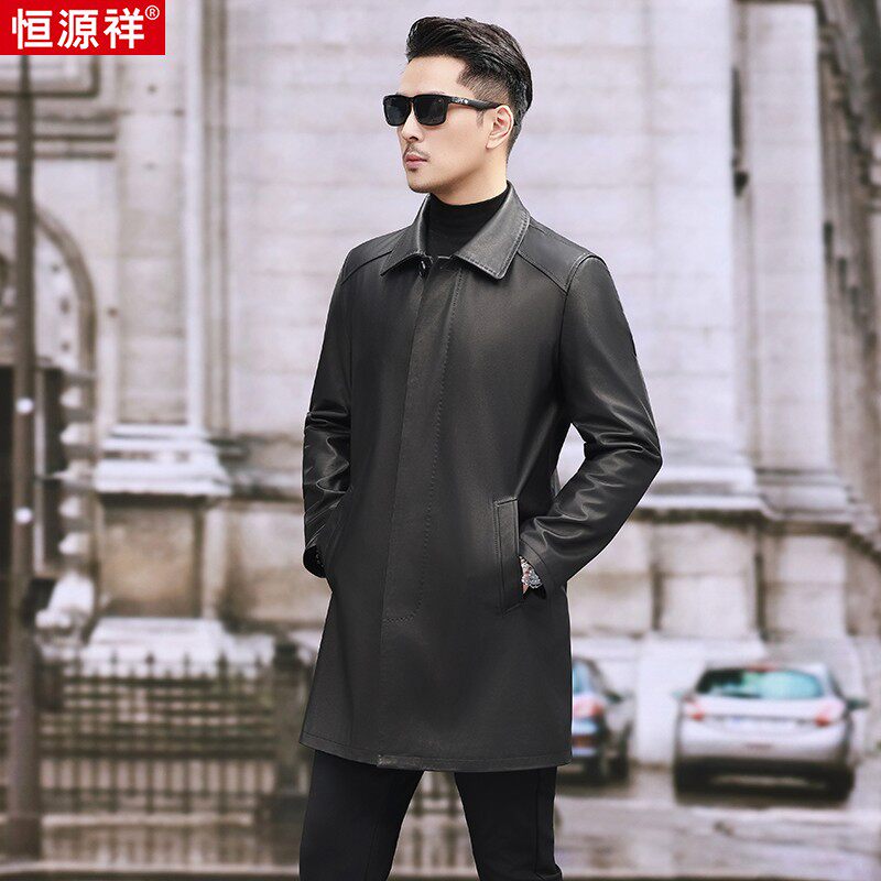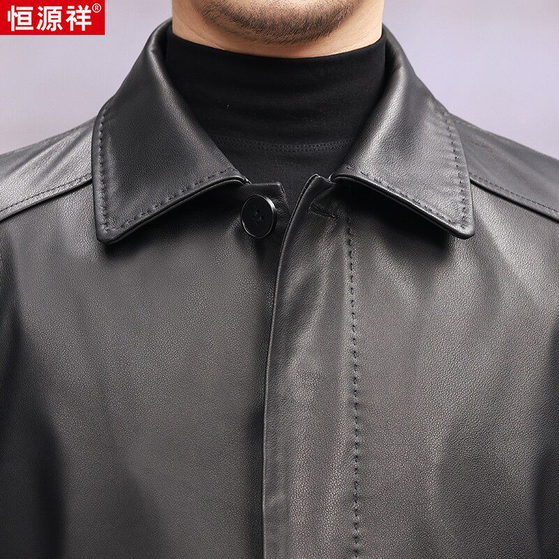 恒源祥真皮皮衣男头层胎牛皮翻领钮扣可拆卸真毛内胆中长款皮外套