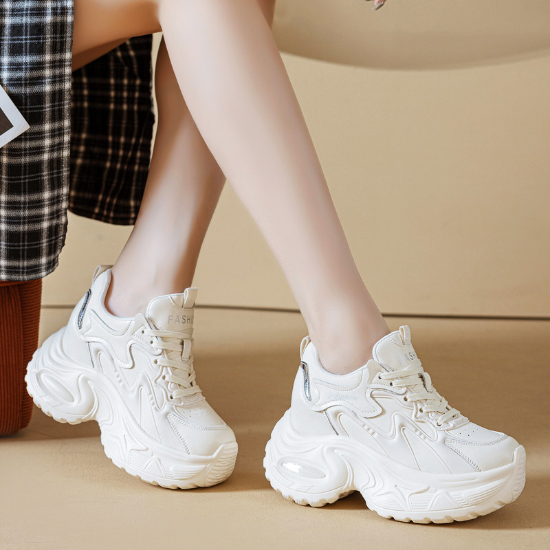 冬季加绒老爹鞋女款内增高9cm小个子白色厚底运动鞋2025新款冬天