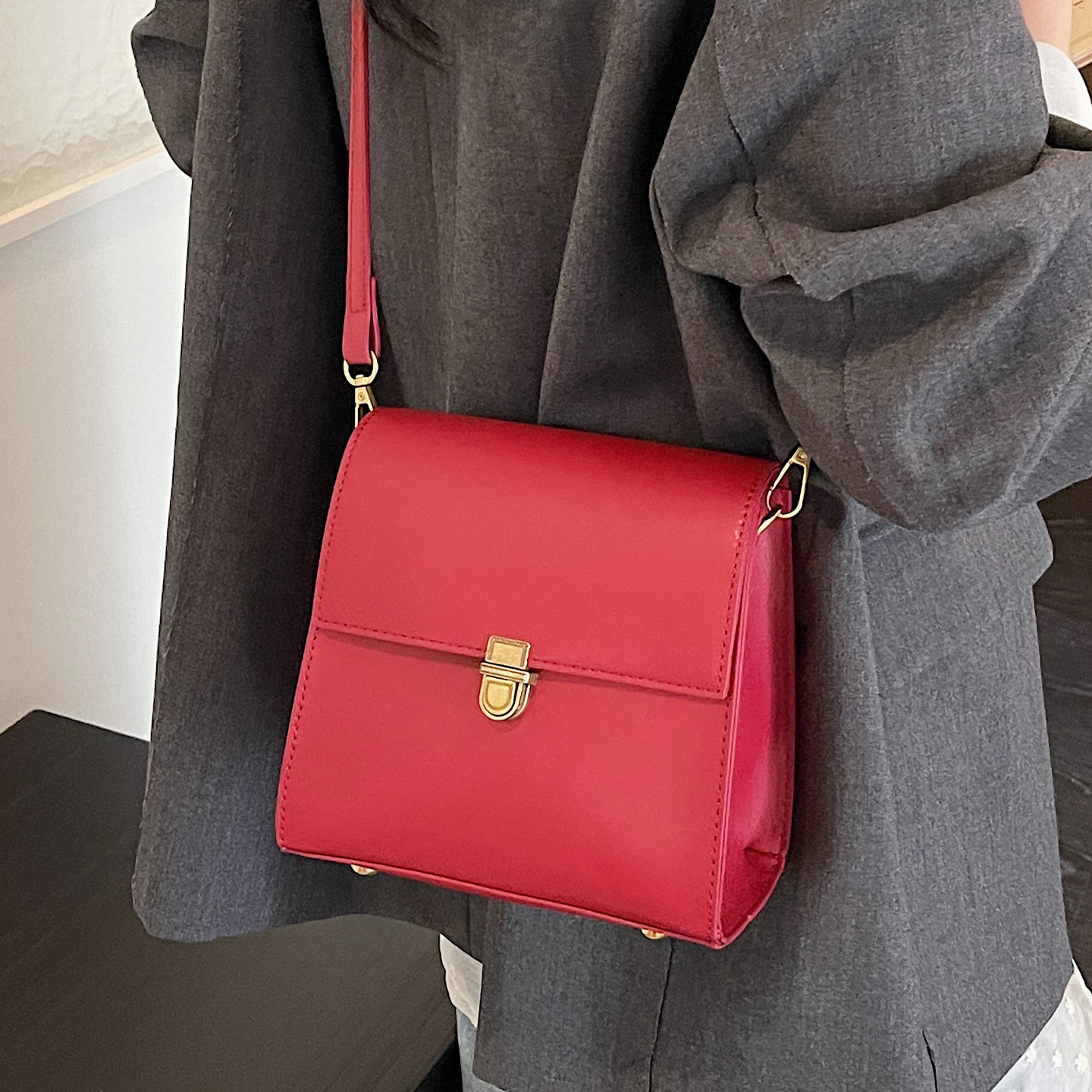 红色包包女款2026新款潮春季时尚高级质感轻奢小众单肩斜挎包女包