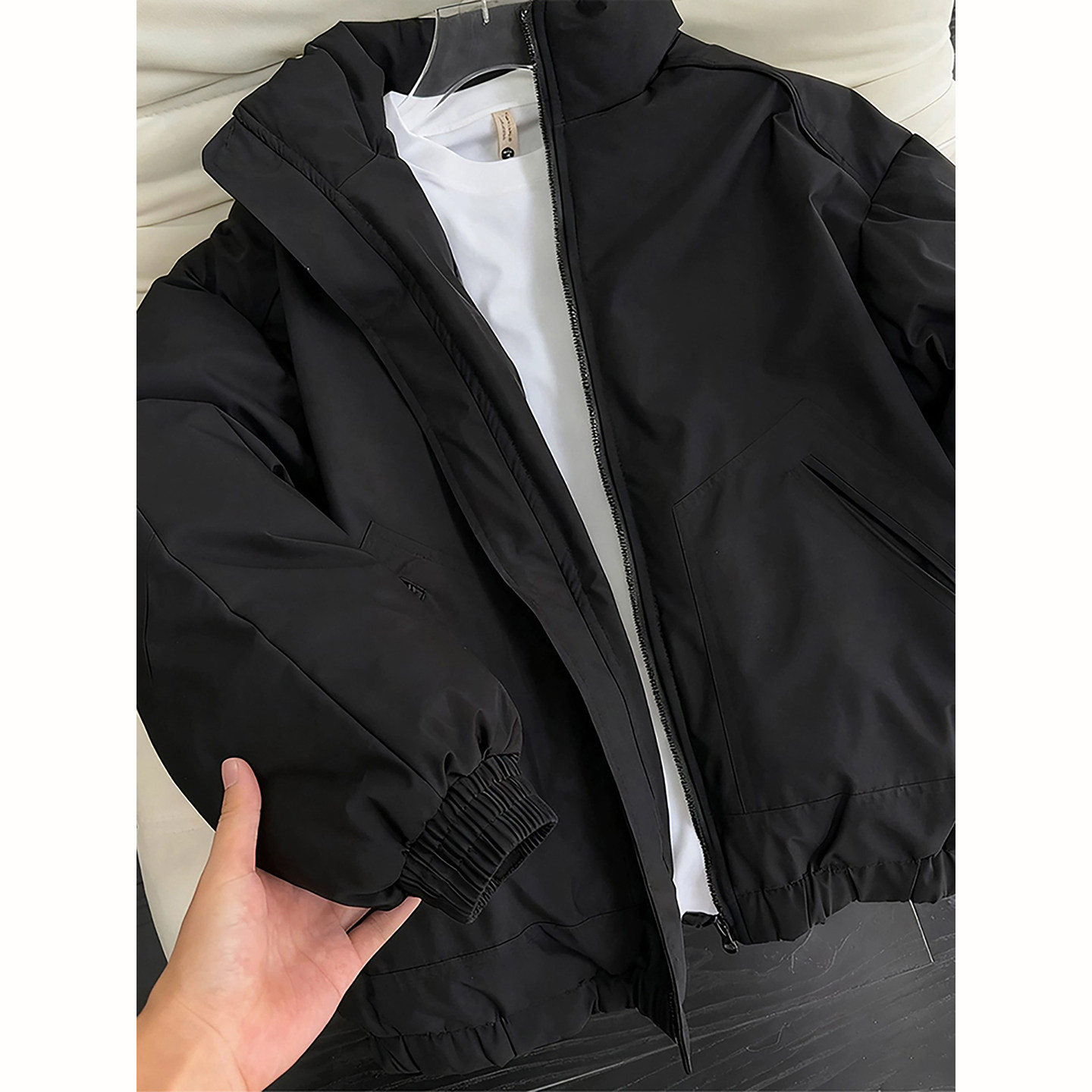 311线报网描述:黑色美式飞行夹克羽绒棉服冬季男士高级感