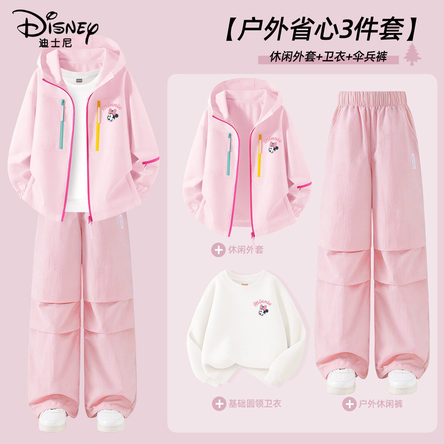 迪士尼女童春装套装2026新款小女孩粉色运动软壳衣儿童春秋款外套