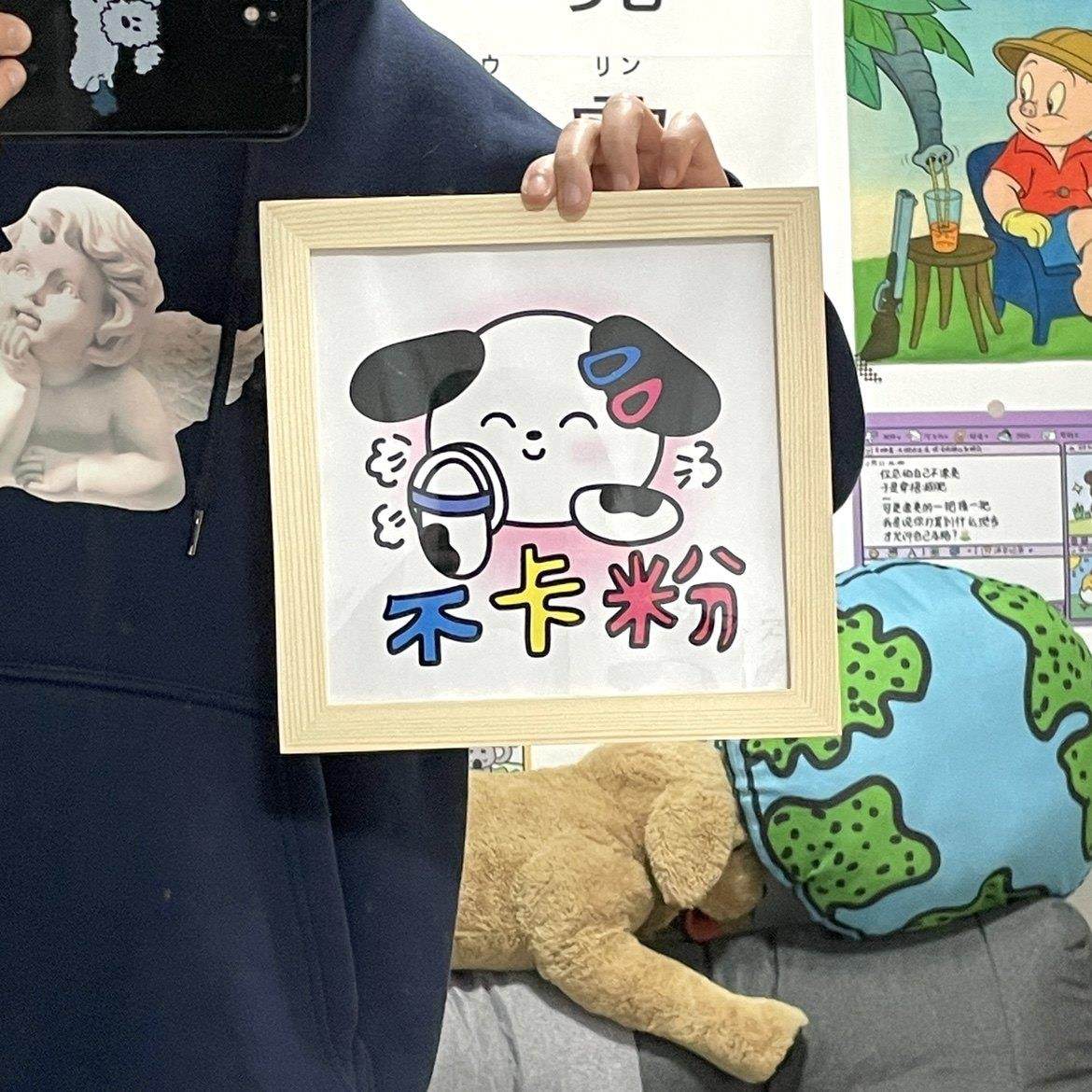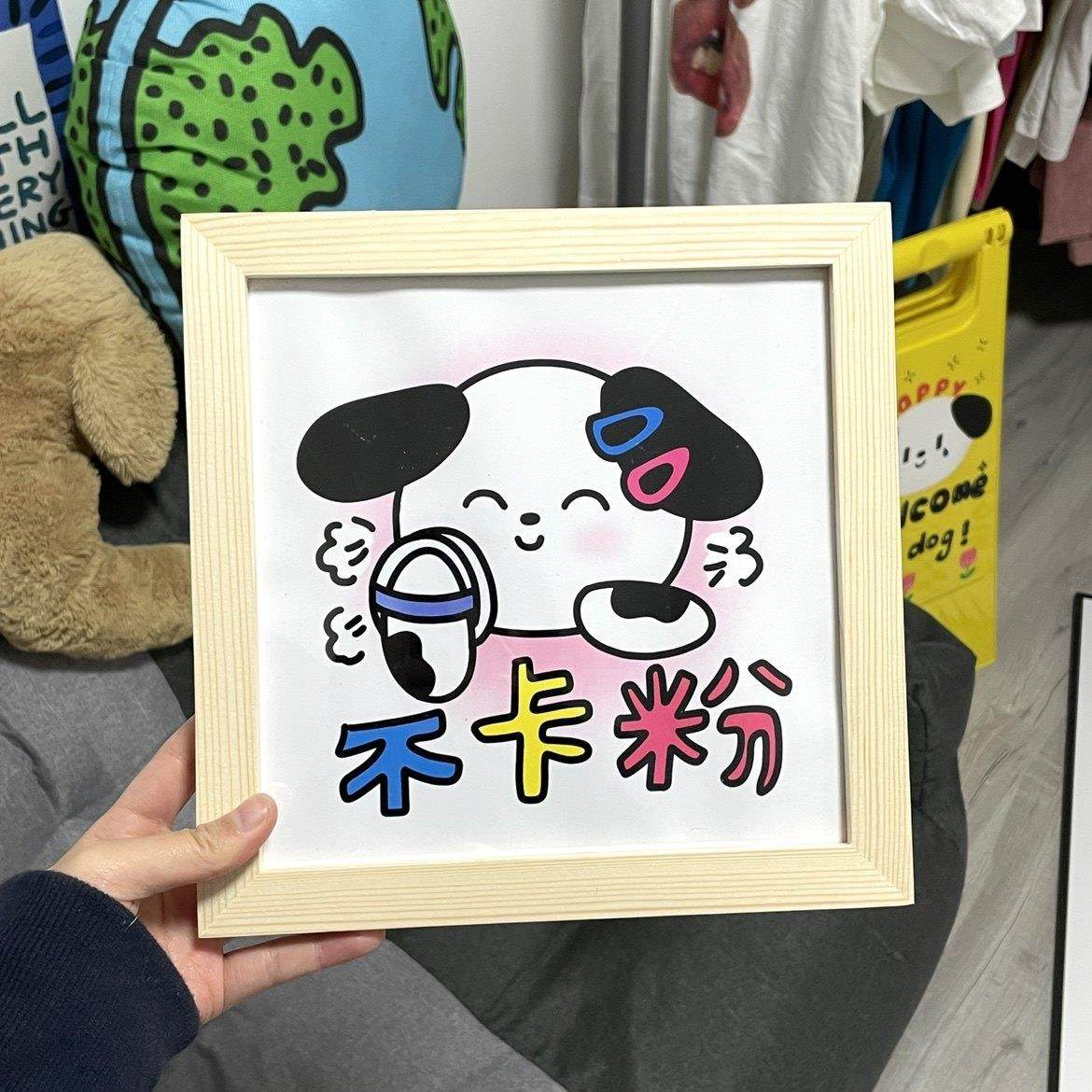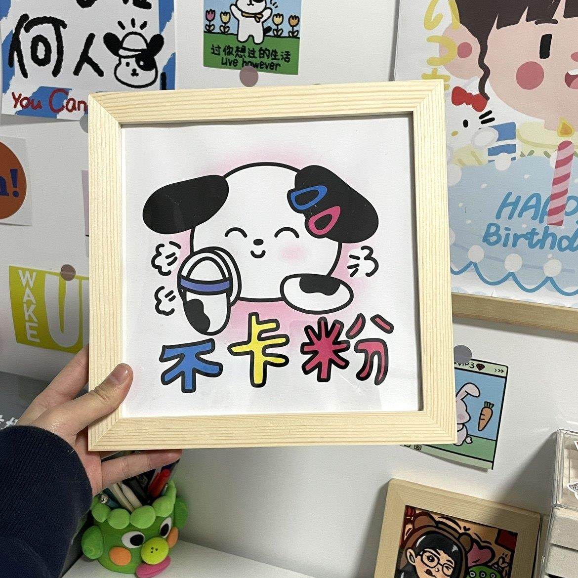 羊狮栗 原创绝不卡粉小狗原木色相框8寸实木创意摆件卧室房间装饰