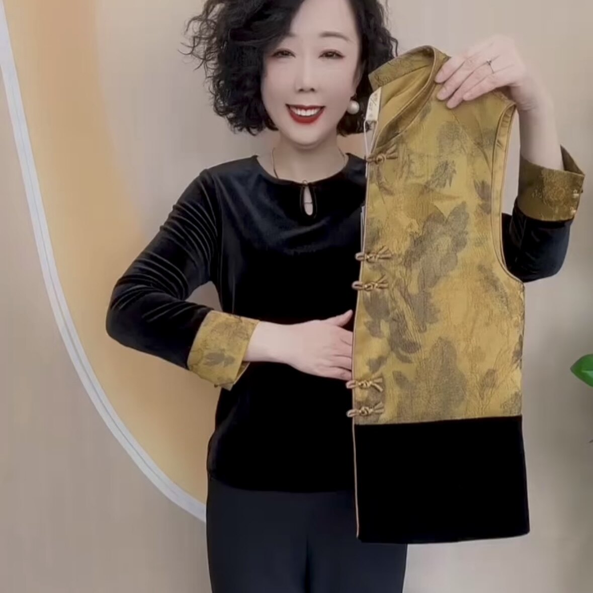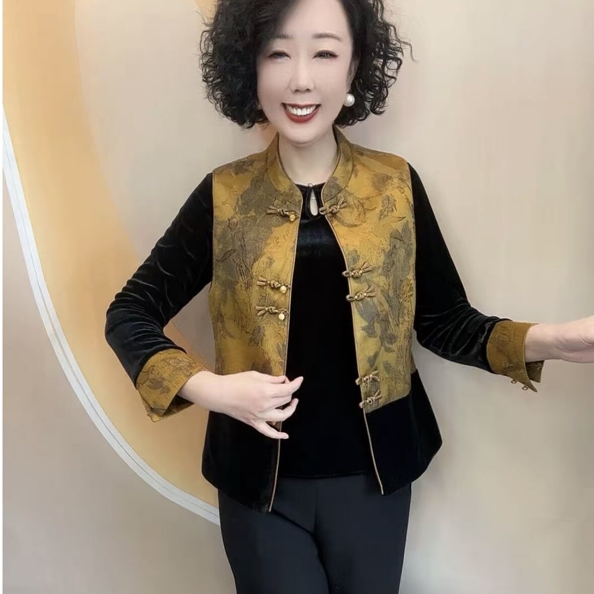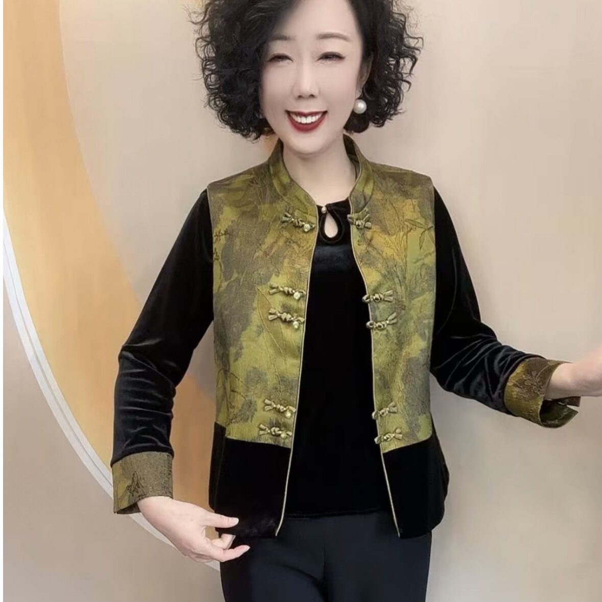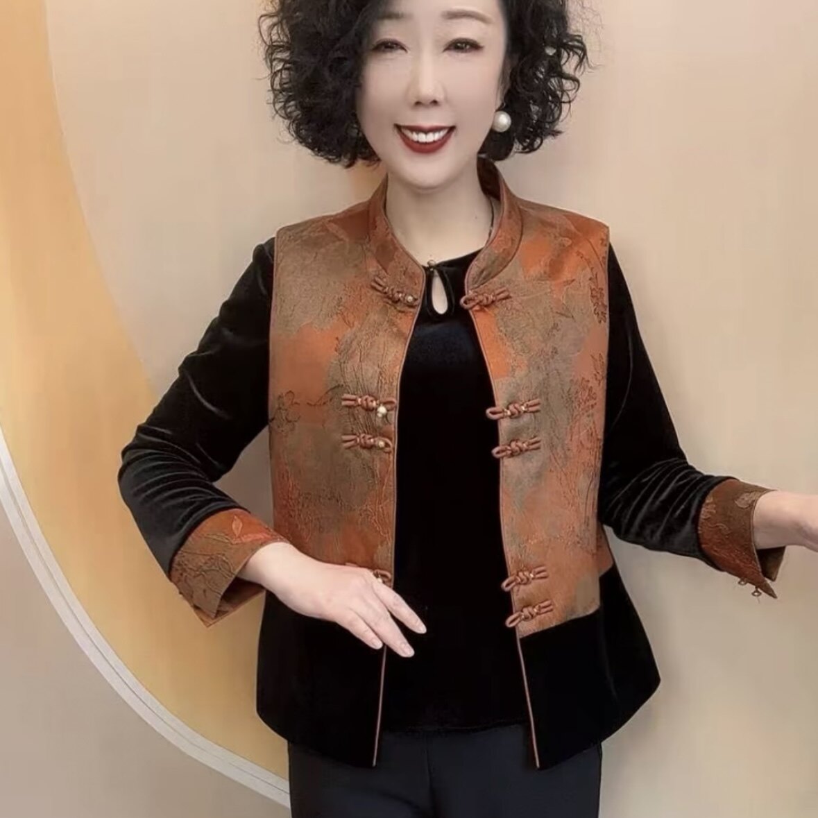 2026春秋新款女士新中式国风丝绒小衫马甲外套中老年妈妈装两件套