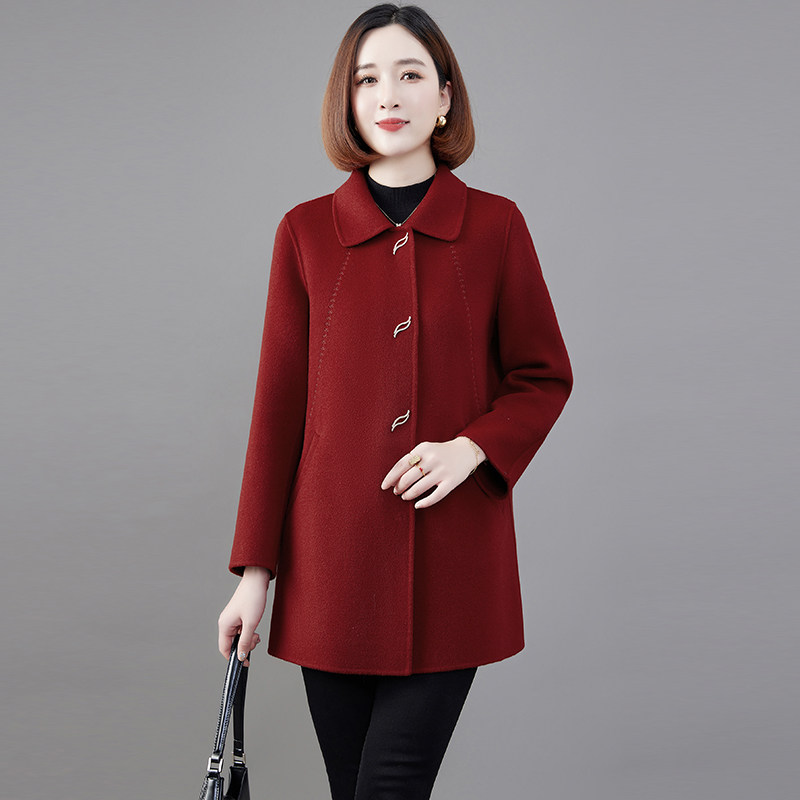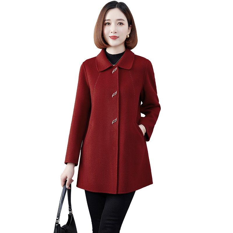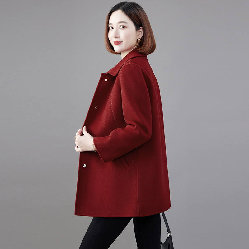 2023新款高端双面绒大衣女中长款修身红色羊毛呢子妈妈小个子外套