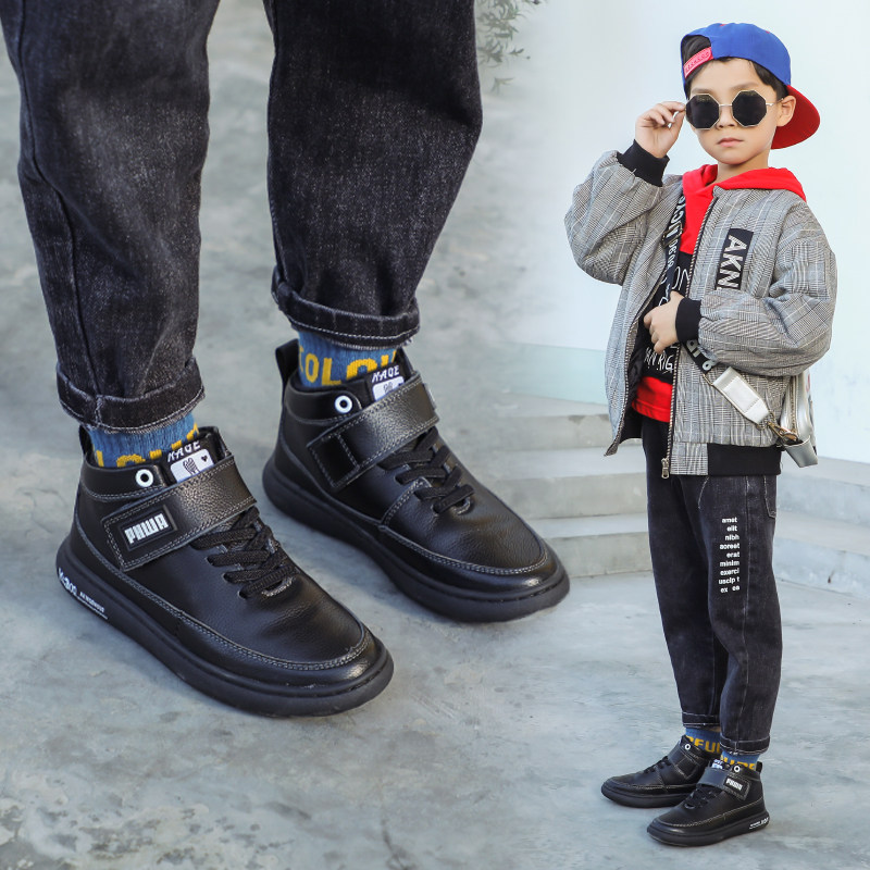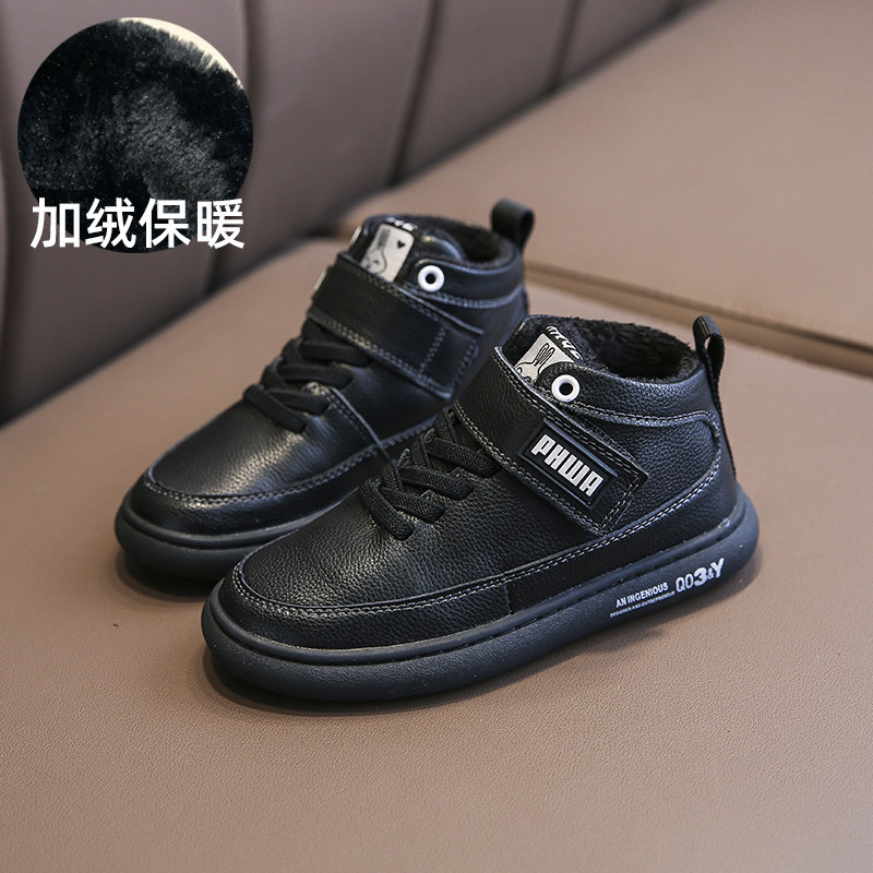 男童皮鞋真皮头层牛皮儿童黑色演出鞋子秋冬小学生加绒男孩棉鞋