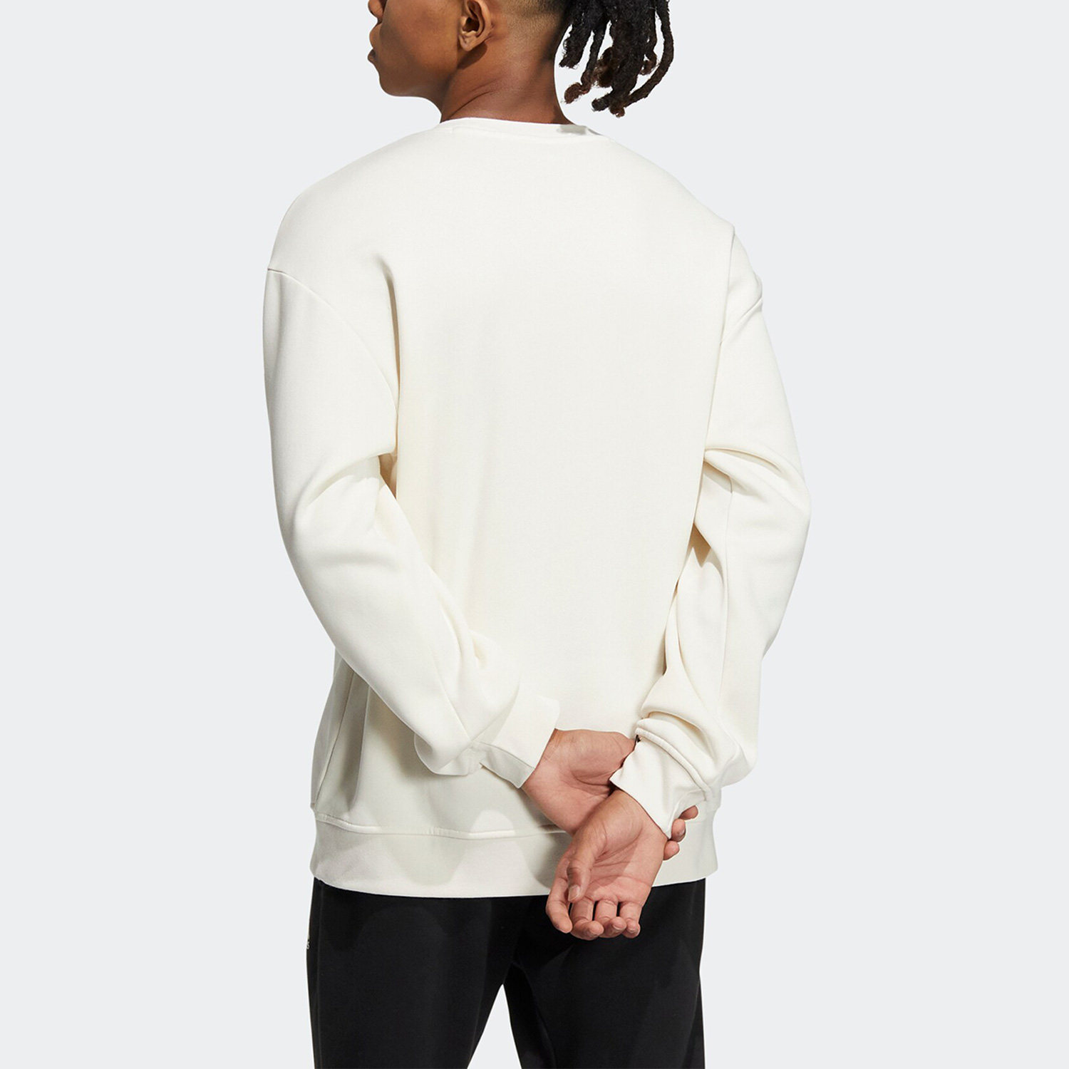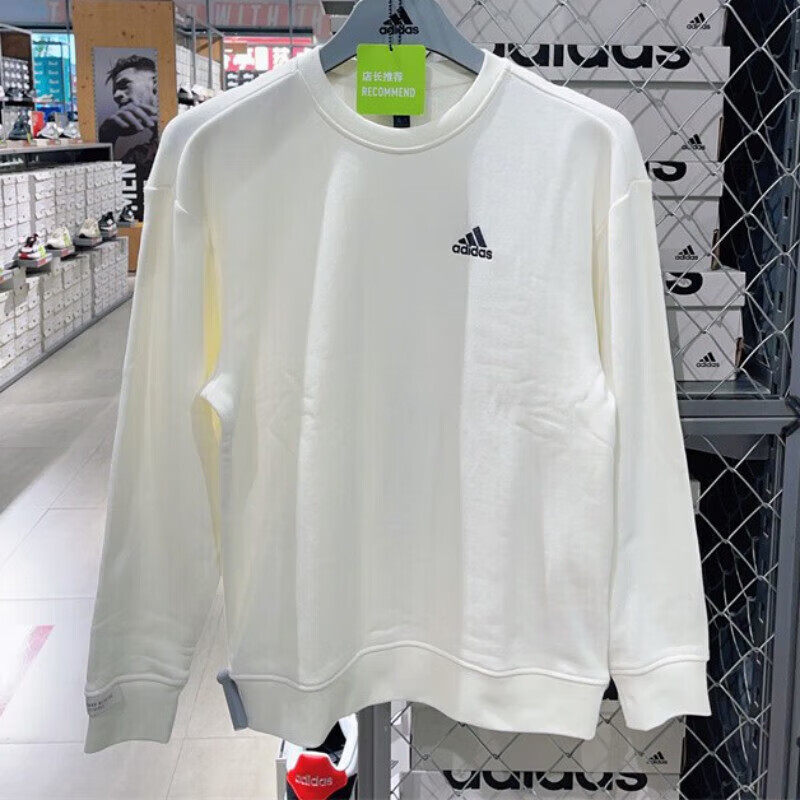 阿迪达斯米白色卫衣男秋冬加绒加厚休闲百搭运动套头圆领长袖上衣