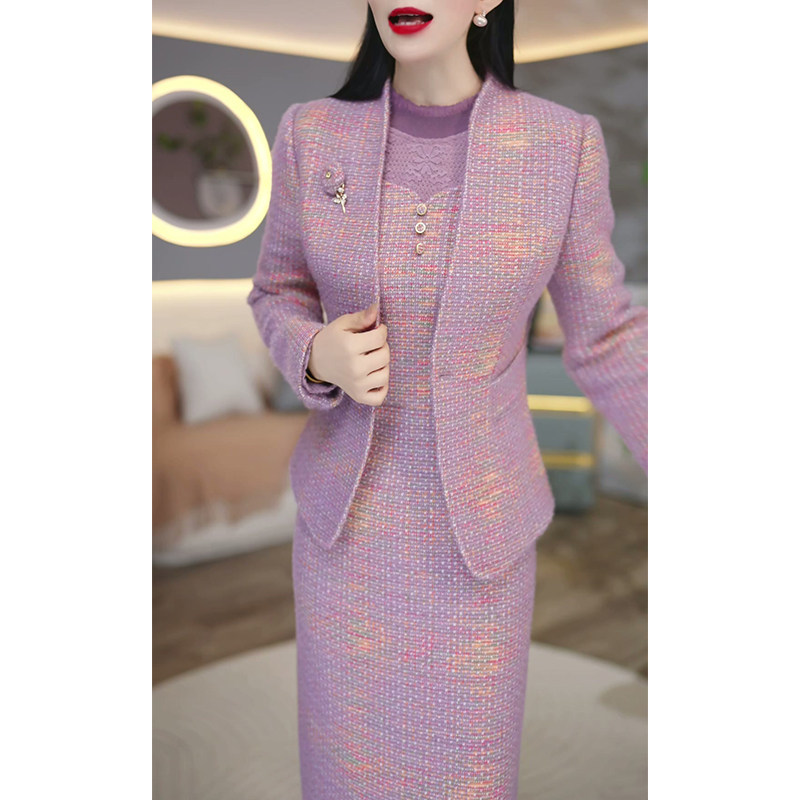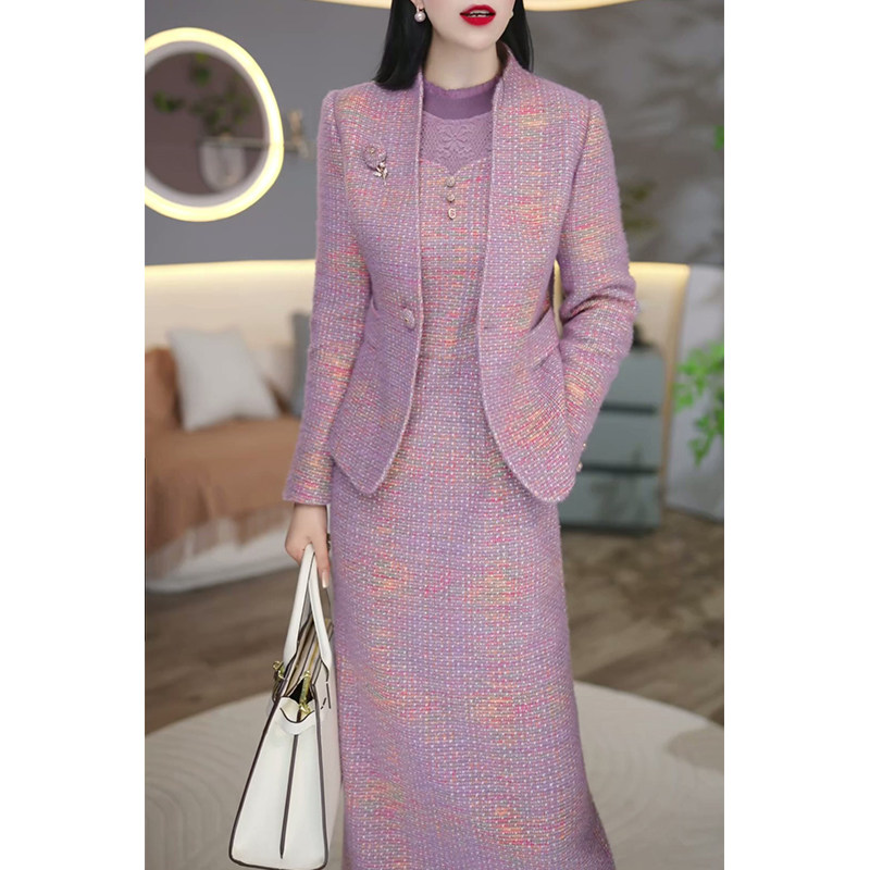 高端长袖两件套连衣裙女2025新款秋冬妈妈气质小西服时尚套装裙子