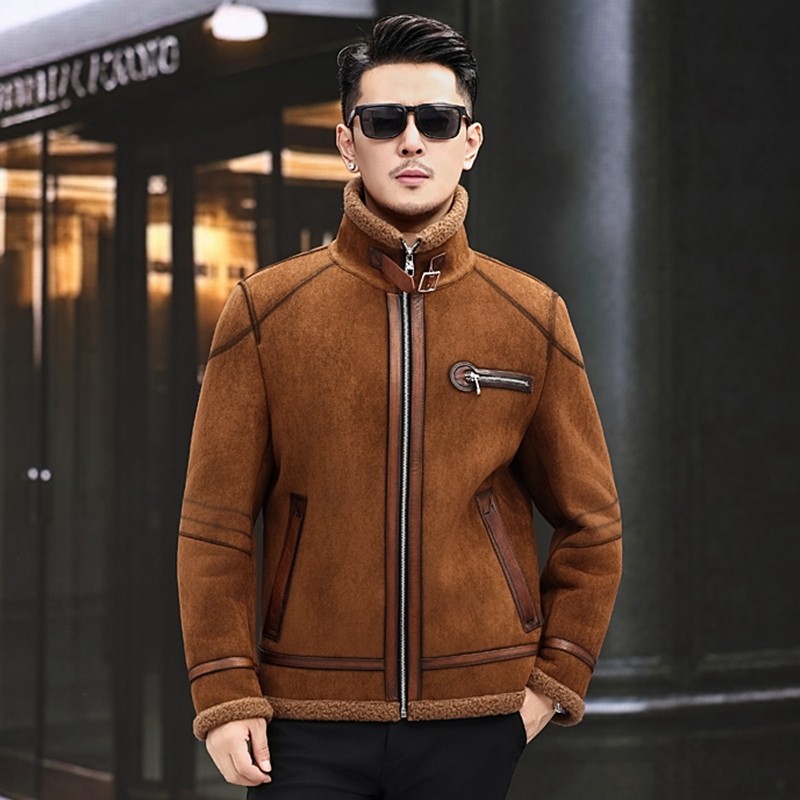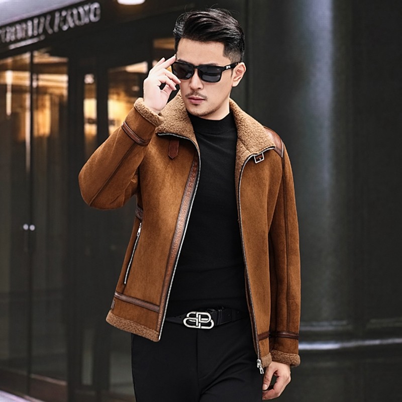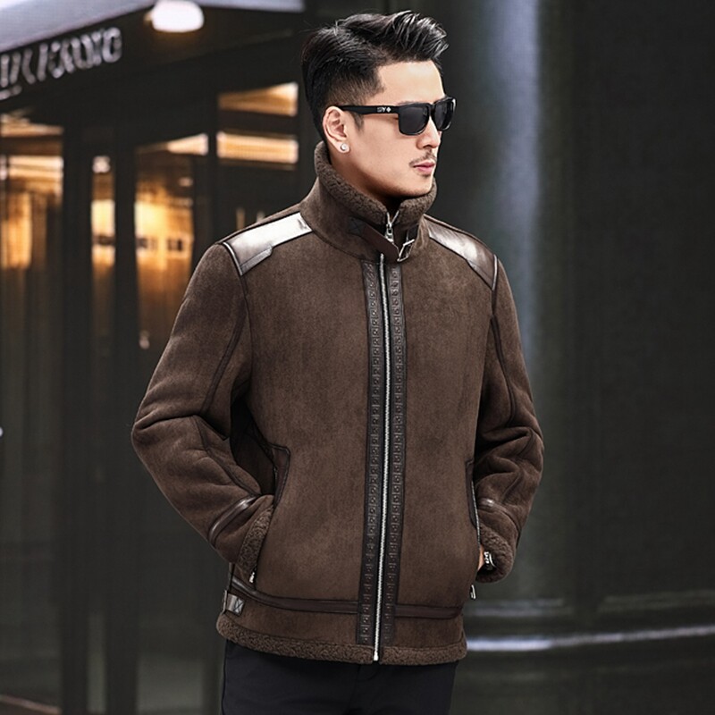 头层皮海宁真皮皮衣男皮毛一体加绒加厚爸爸装皮夹克男羊羔毛外套