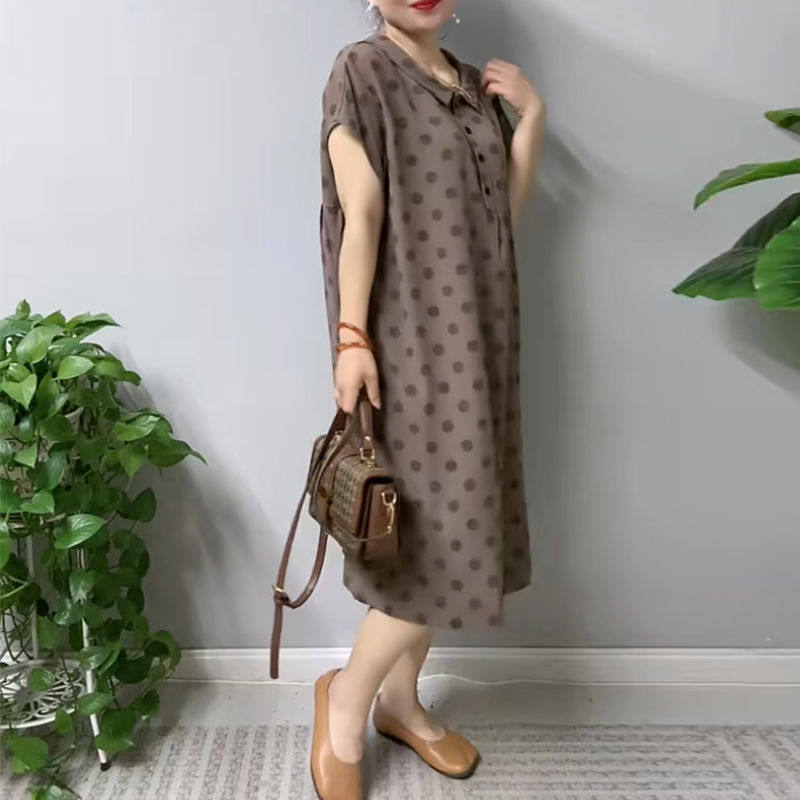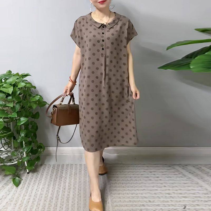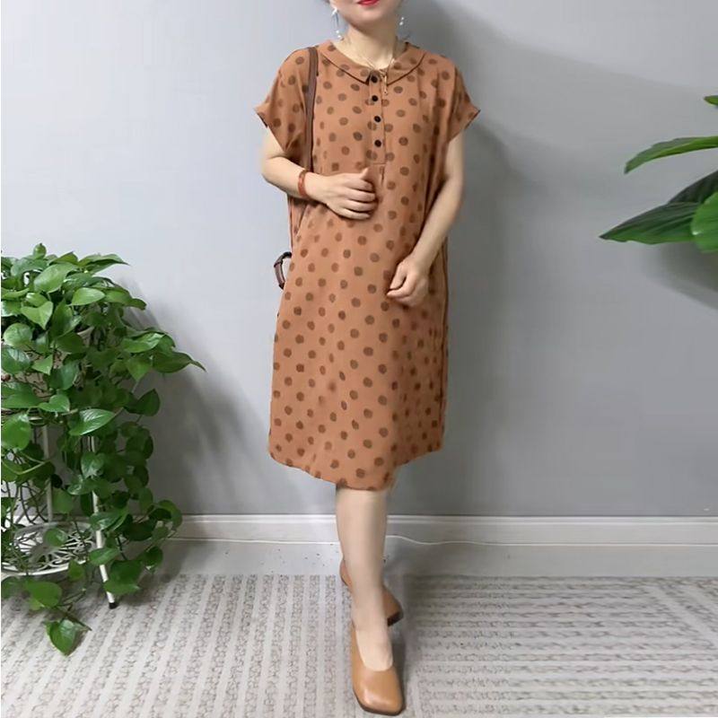 2025夏季小个子连衣裙女新款娃娃领洋气遮肚子显瘦中长款过膝裙子