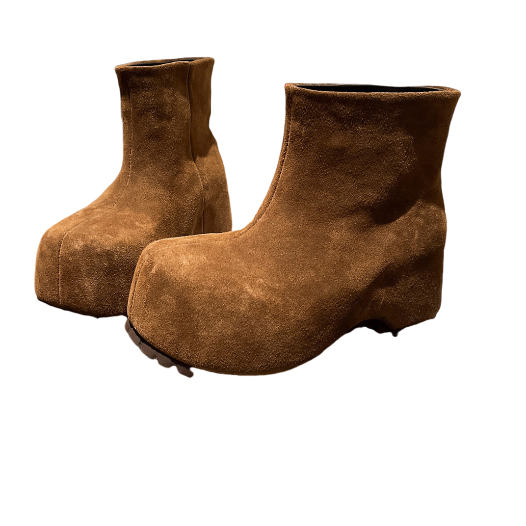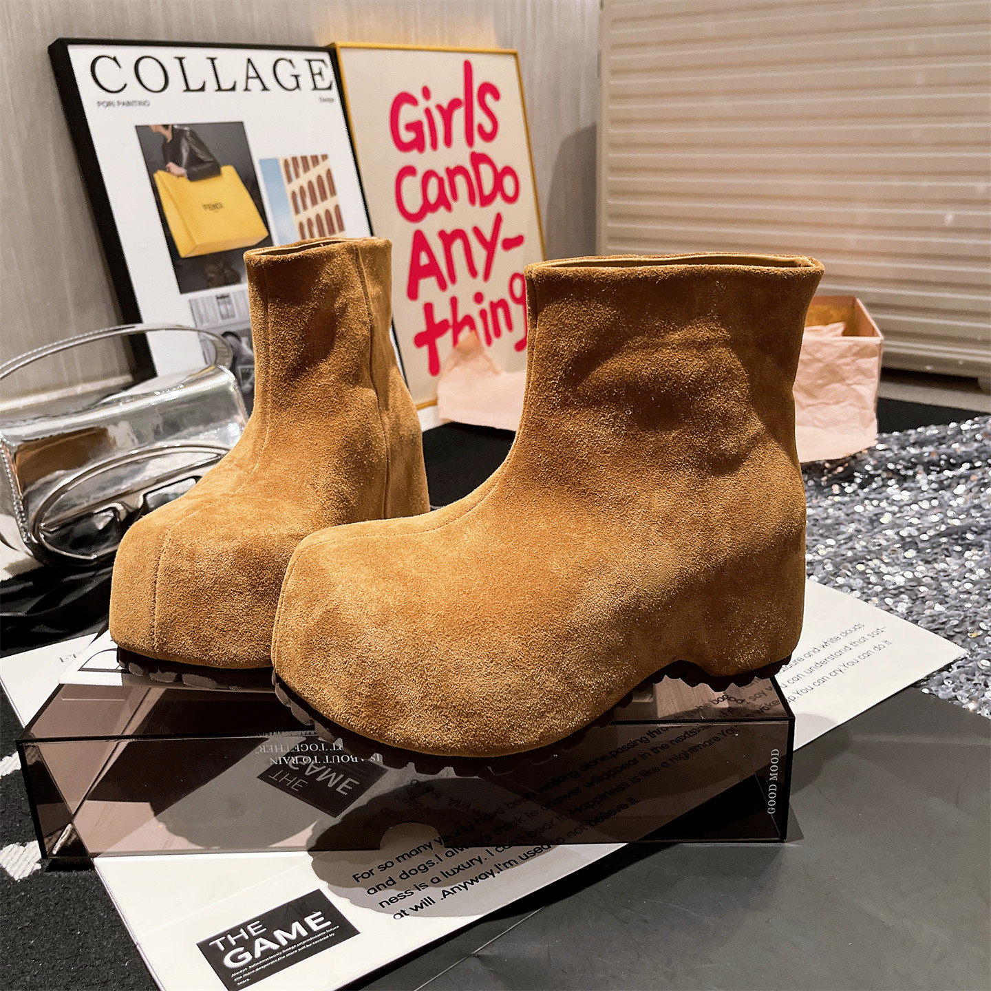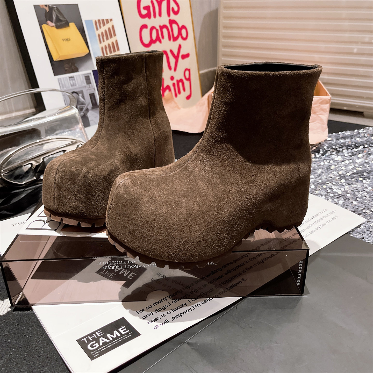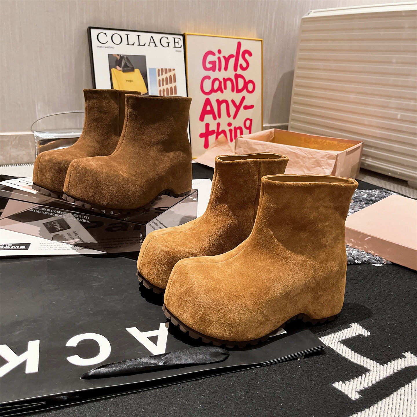 欧货真皮厚底松糕内增高小个子8cm马丁靴卡皮巴拉超高跟短靴女鞋