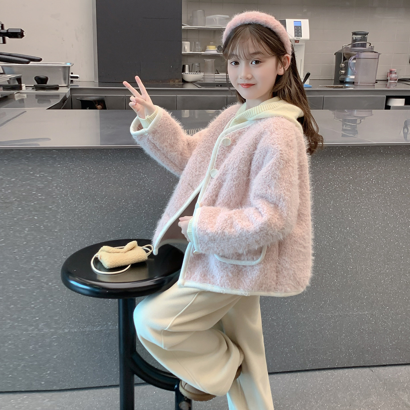 女童秋冬款外套2026新款儿童网红洋气小香风加厚上衣女孩冬装时髦