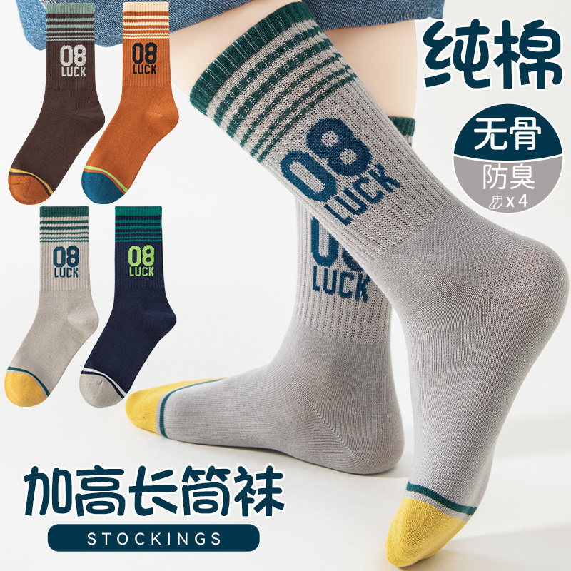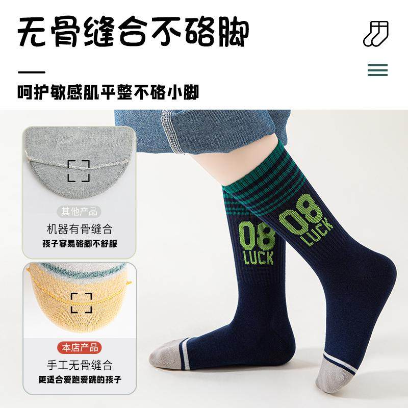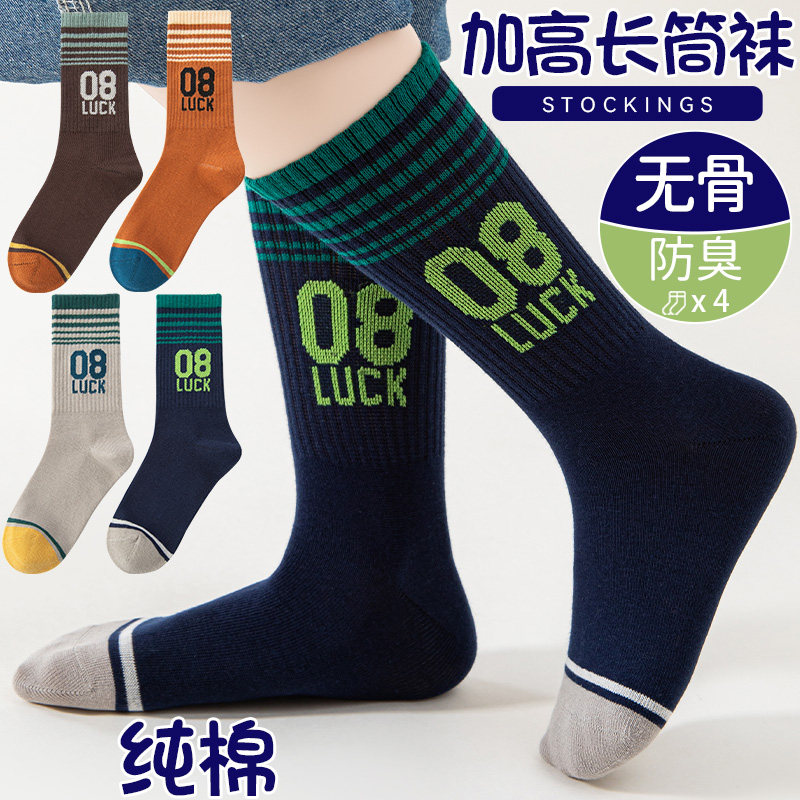 男童长筒袜子纯棉春秋冬季儿童中高筒篮球袜青少年小学生男大童袜