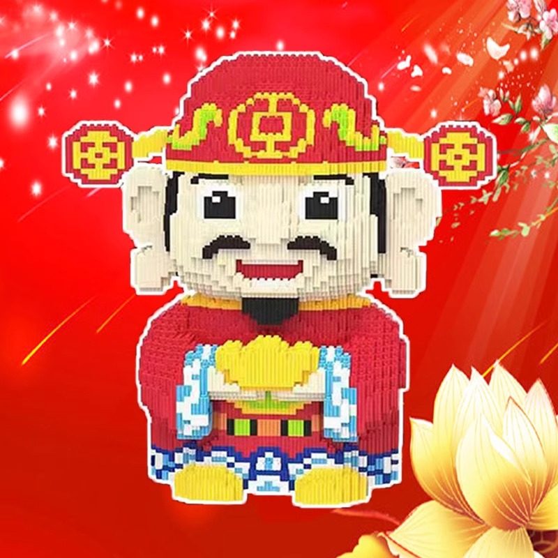 财神爷积木2024龙年玩具益智拼装8一12岁小颗粒高难度巨大型摆件