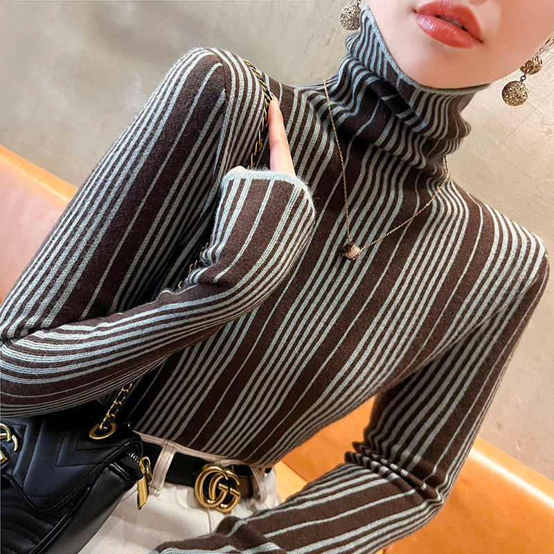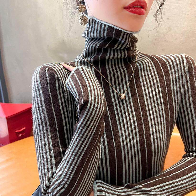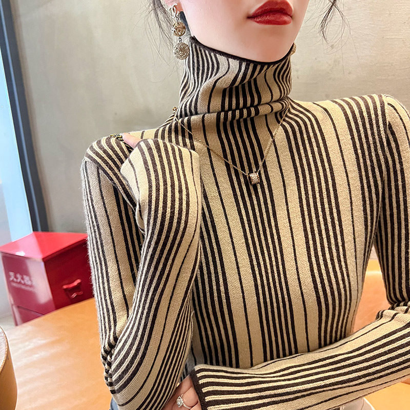条纹高领毛衣秋冬女款2024新款修身上衣显瘦打底衫内搭洋气女装
