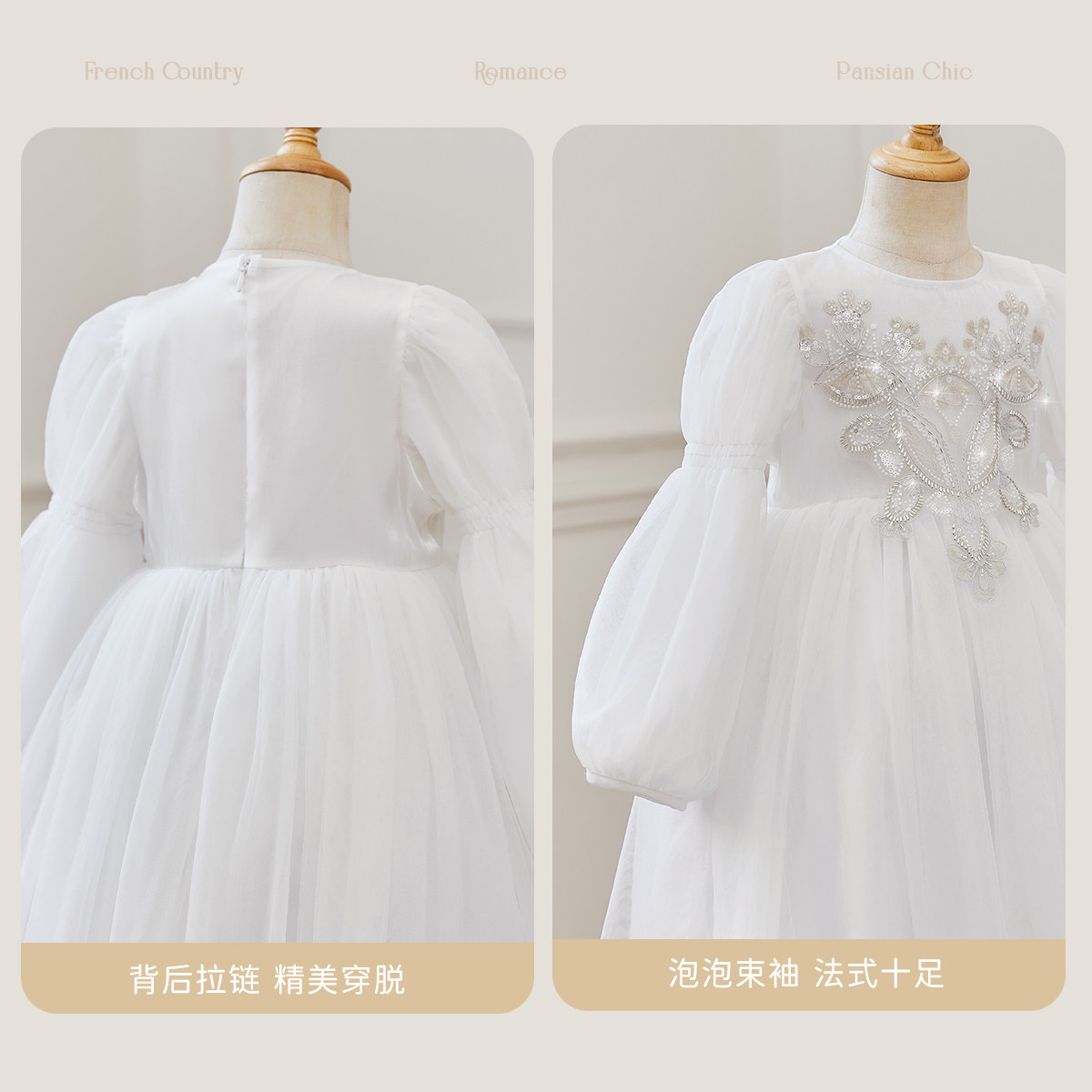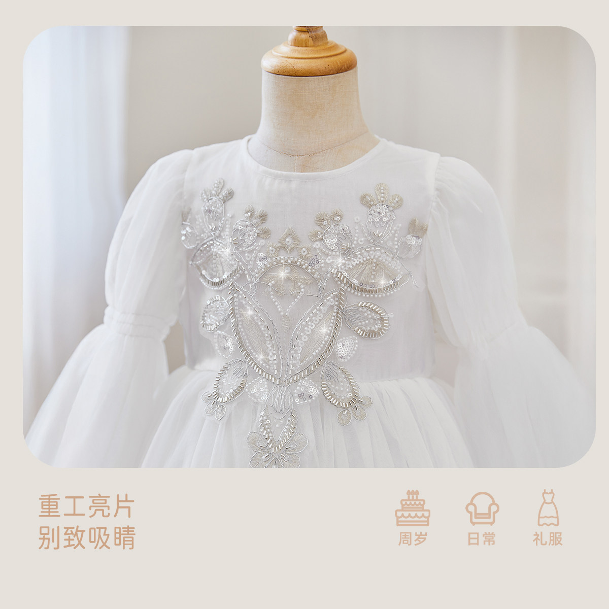 女童白色蛋糕裙大童春季派对公主裙宝宝春秋亮片连衣裙春儿童礼服