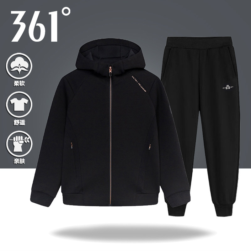 361度运动套装女款2026春季新款连帽开衫卫衣收口卫裤针织两件套