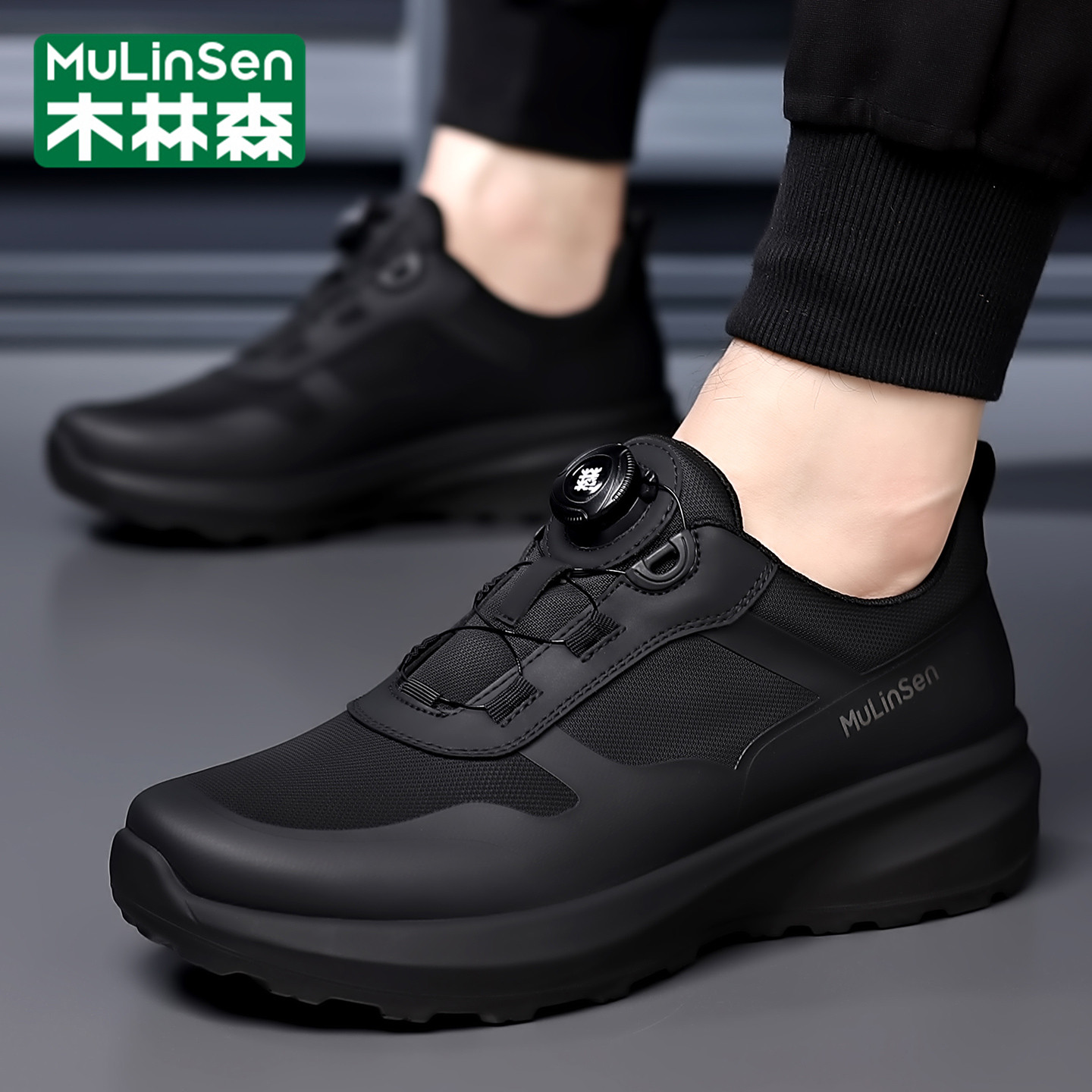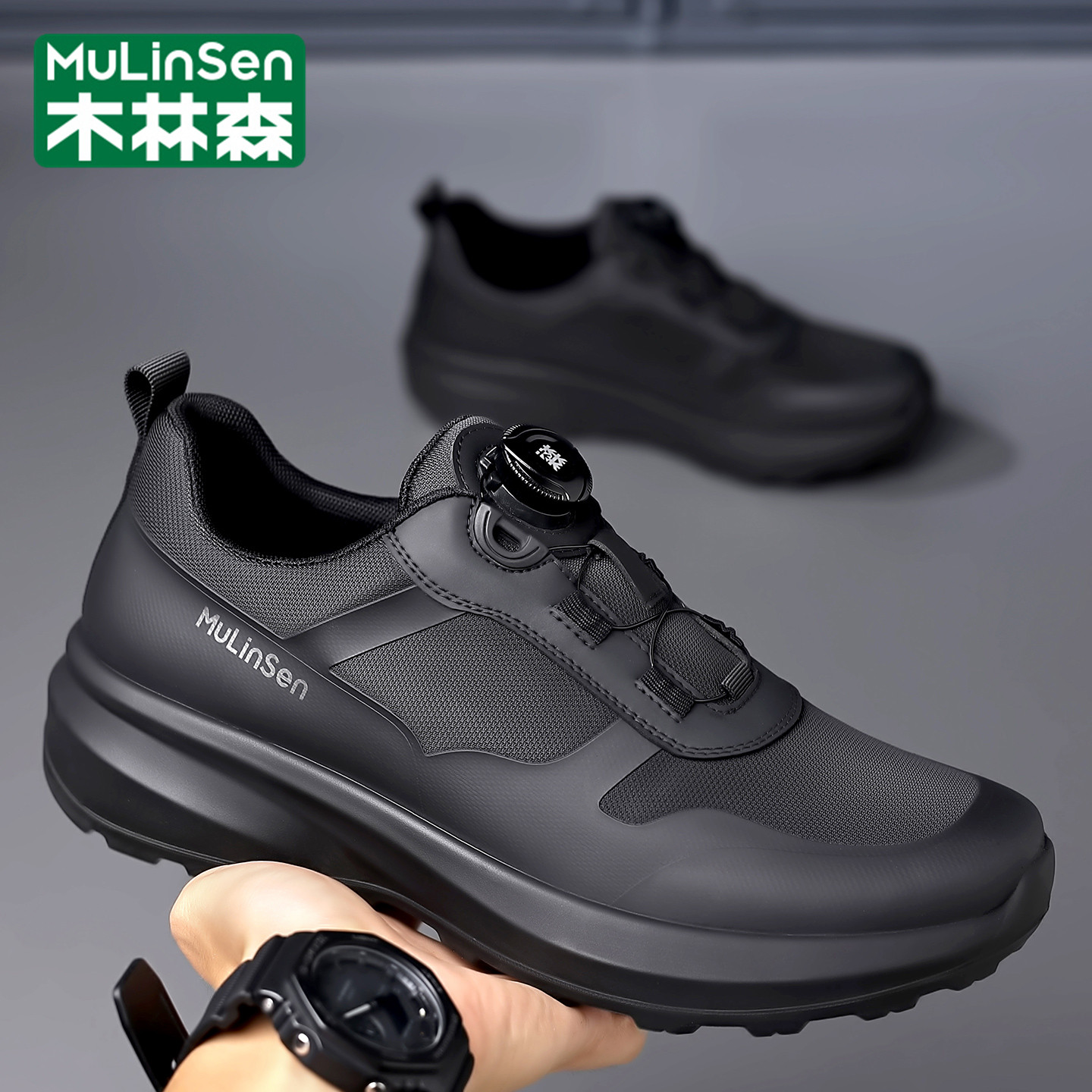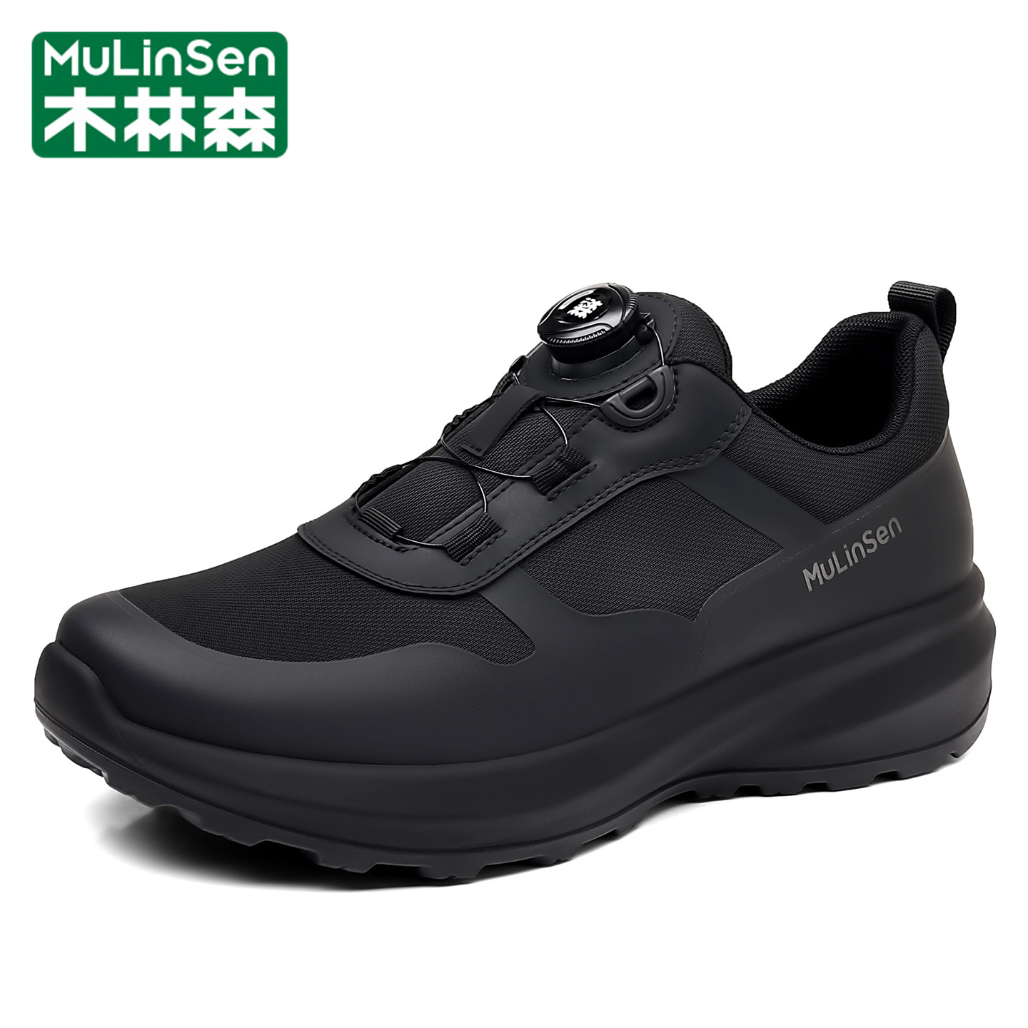 木林森男鞋2025新款冬季运动休闲网面软底跑步登山旋钮大码老爹鞋