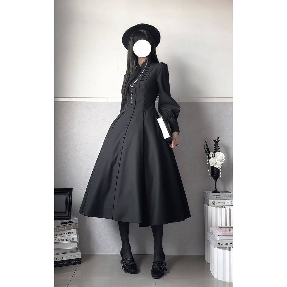 黑调修女 中长款收腰连衣裙冬季新款暗黑系优雅Lolita大摆连衣裙