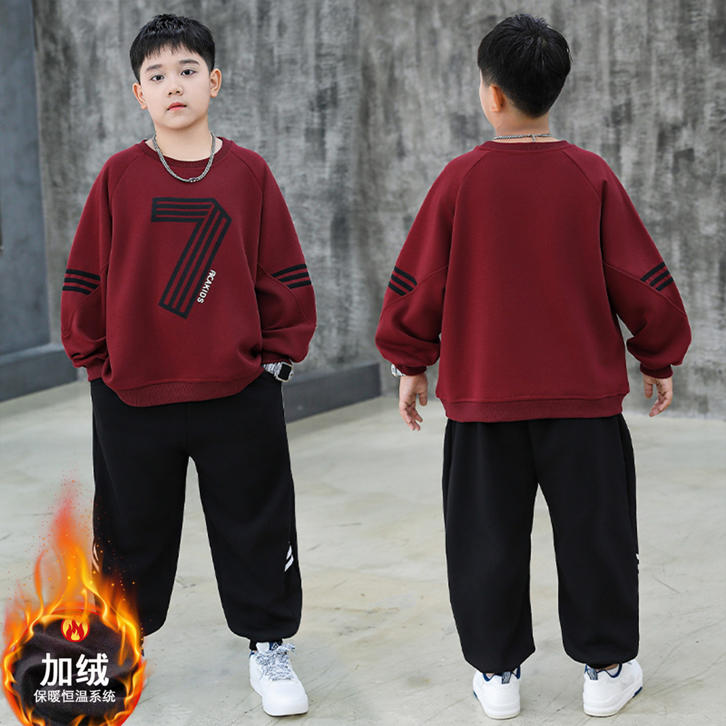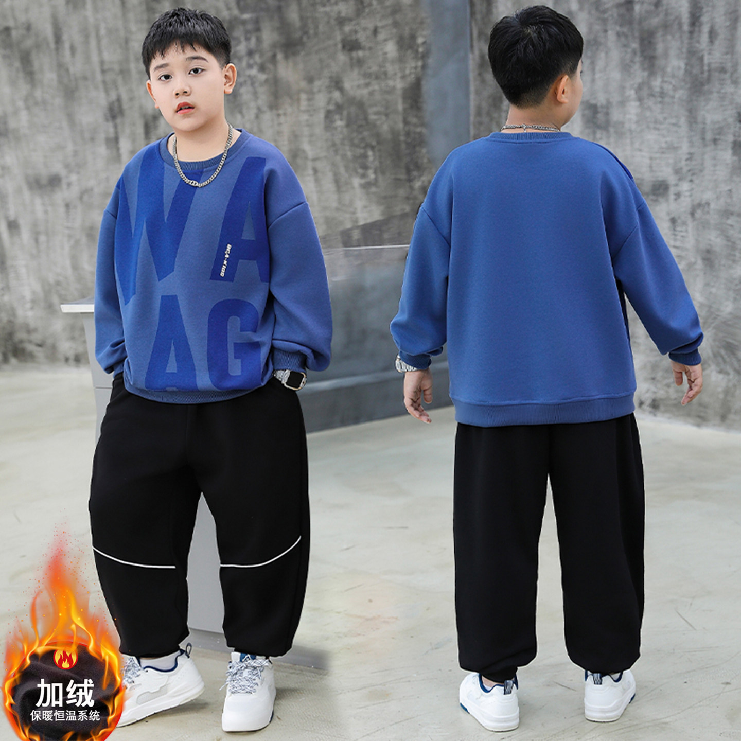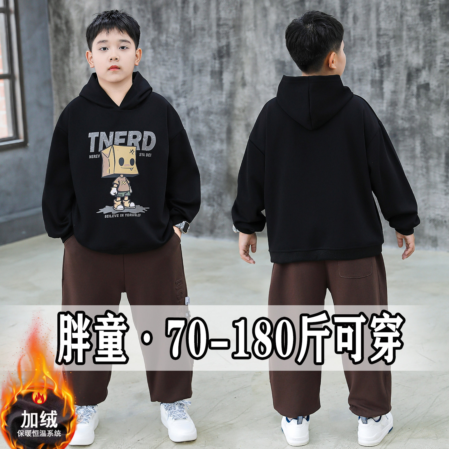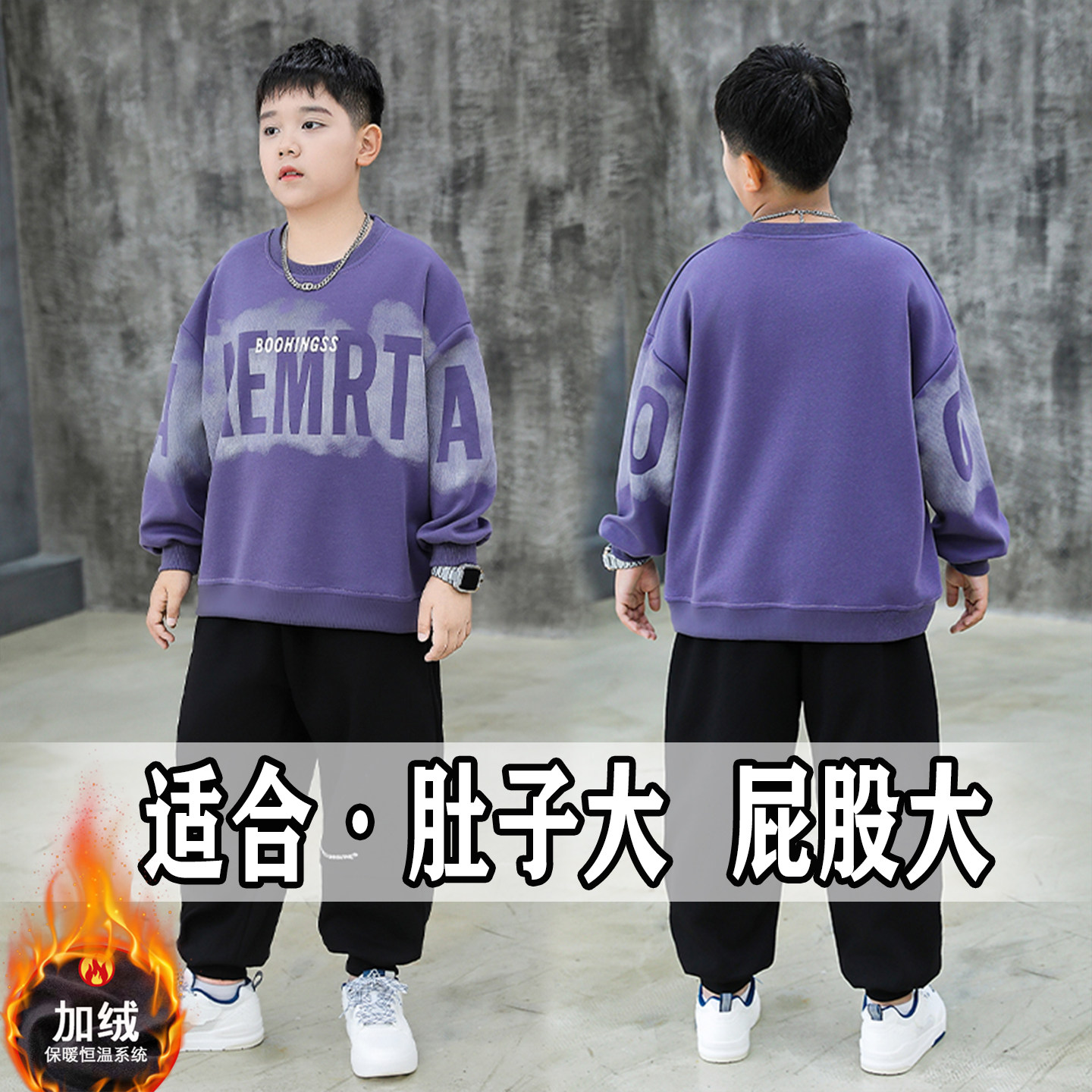 胖男童套装加肥大码冬装新款青少年保暖卫衣两件套加绒加厚运动服