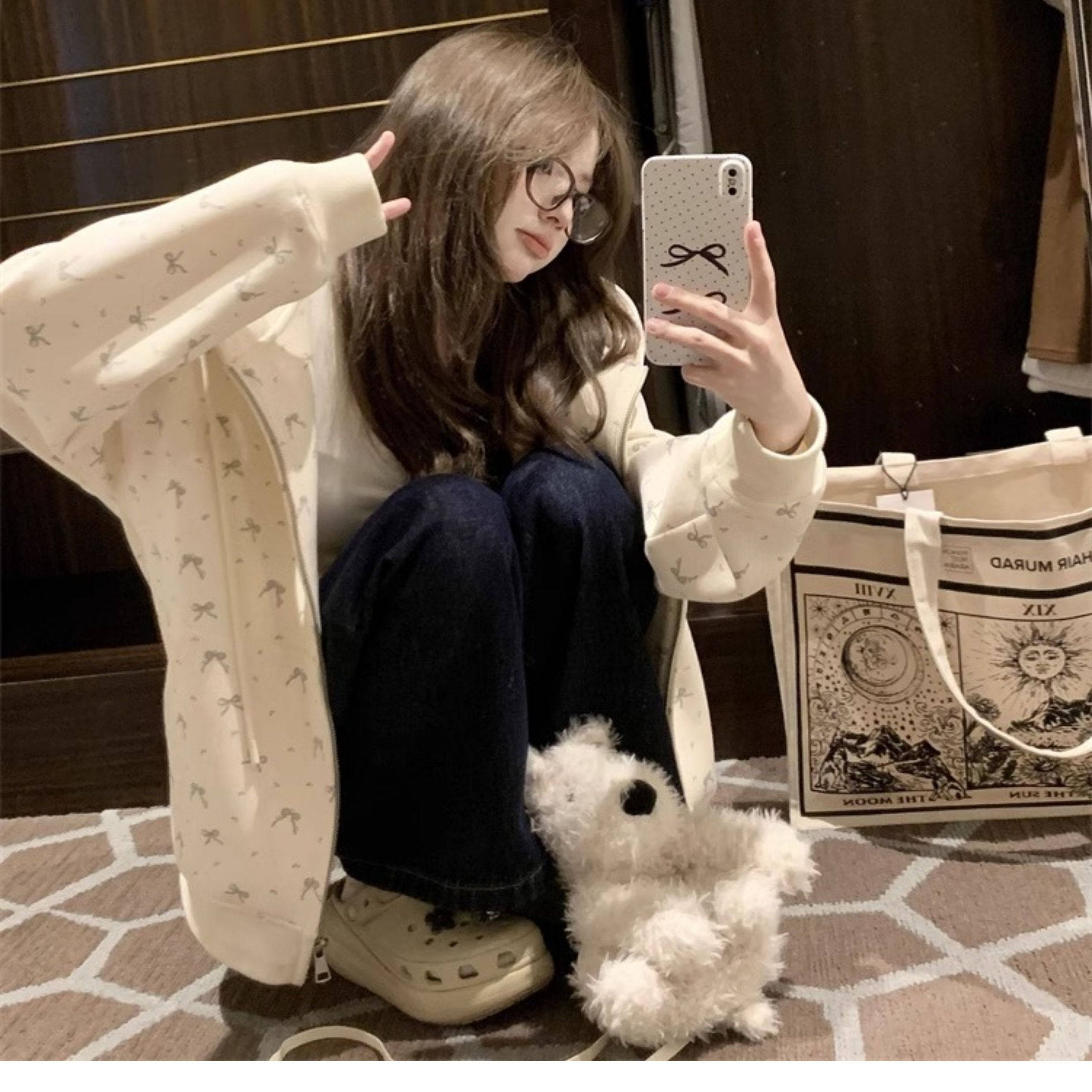 奶fufu学生连帽卫衣外套女款春秋宽松美式慵懒chic秋季开衫上衣薄