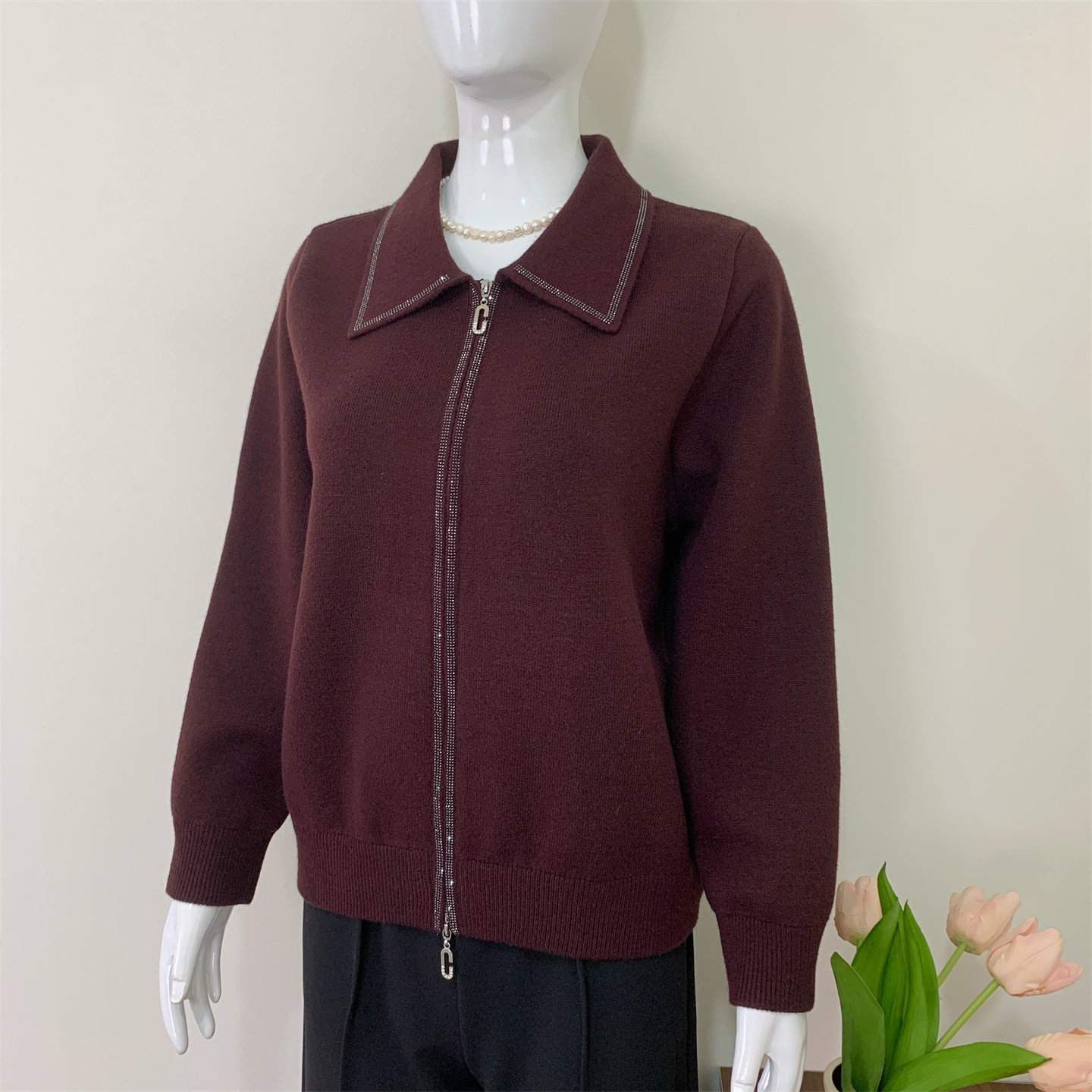 妈妈秋冬装时尚减龄针织衫外套2025新款中老年女装喜婆婆红色上衣