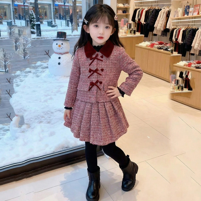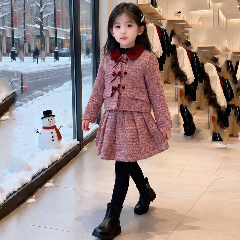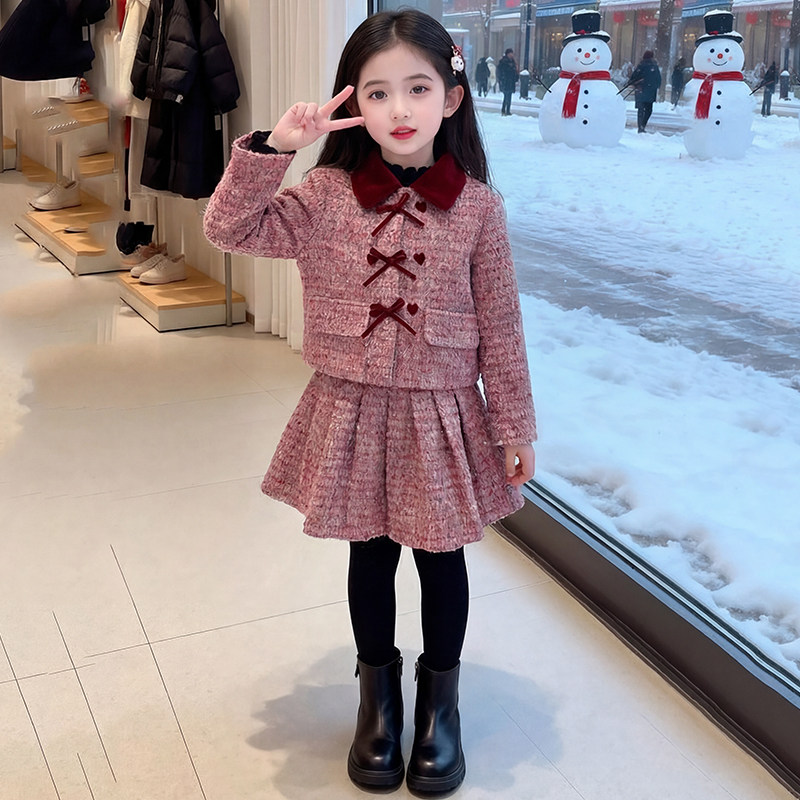 女童冬装套装2026新款儿童洋气网红过年半身裙两件套女孩冬季衣服