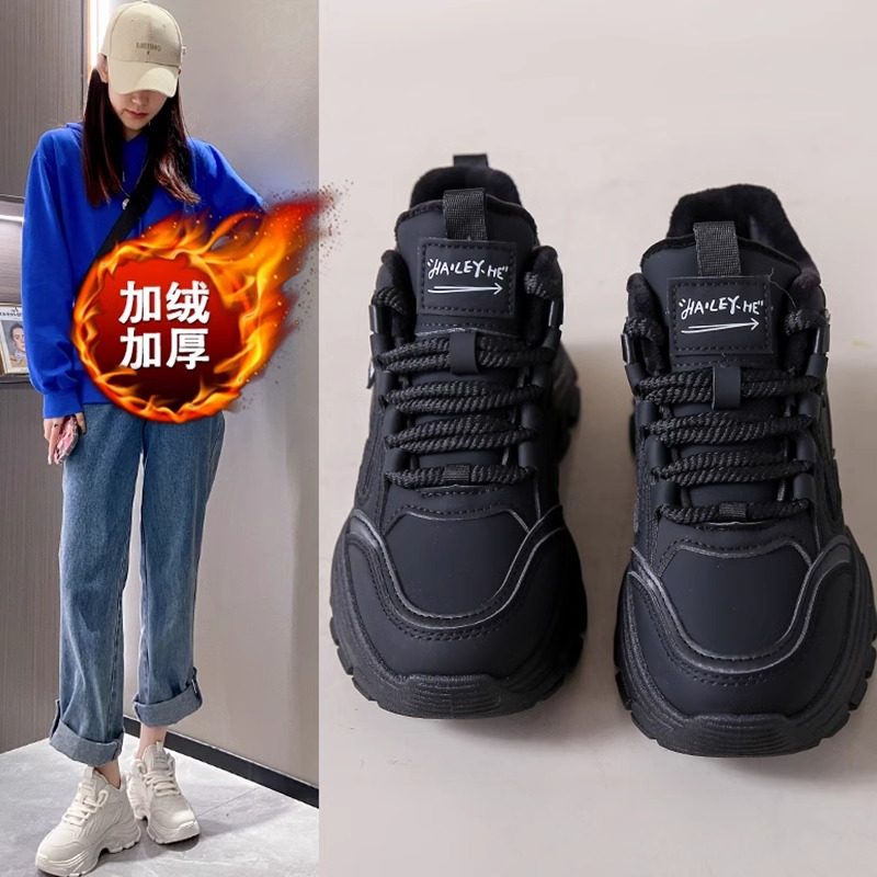 踩屎感黑色老爹鞋女款2025秋冬季新款爆款加绒保暖运动鞋厚底增高