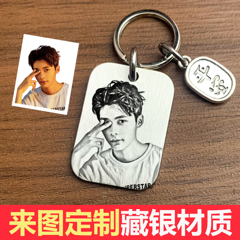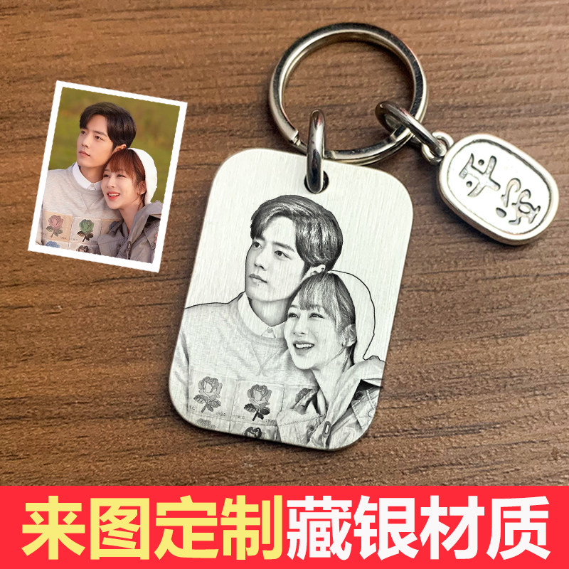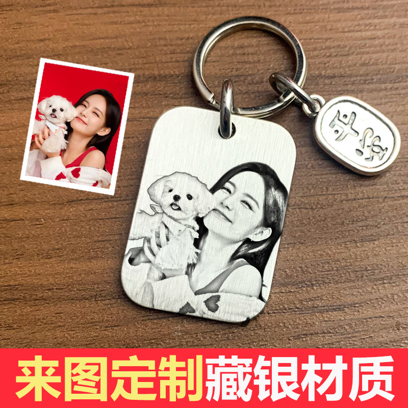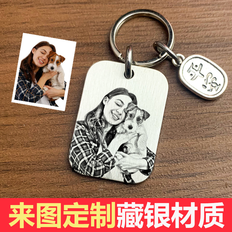 藏银钥匙扣照片定制刻字防丢挂件情侣纪念男女朋友闺蜜生日礼物