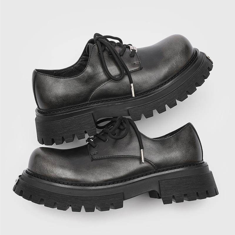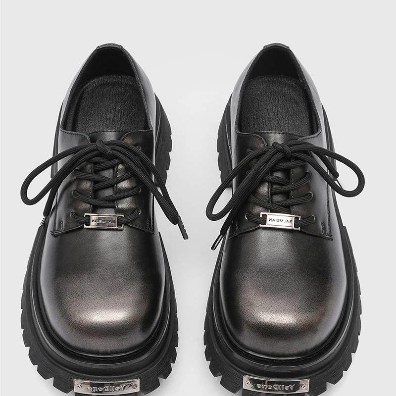 皮鞋男款2025新款年轻人休闲鞋痞帅高级感大头鞋子黑色厚底德比鞋